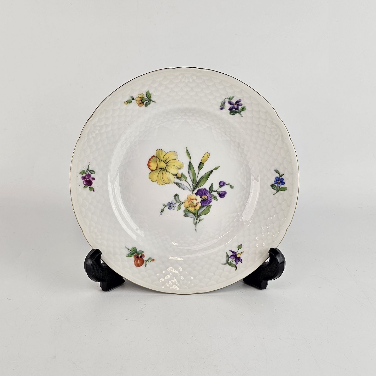 Saksisk blomst, er hvidt porcelæn, dekoreret med saksiske blomster og guldkant.