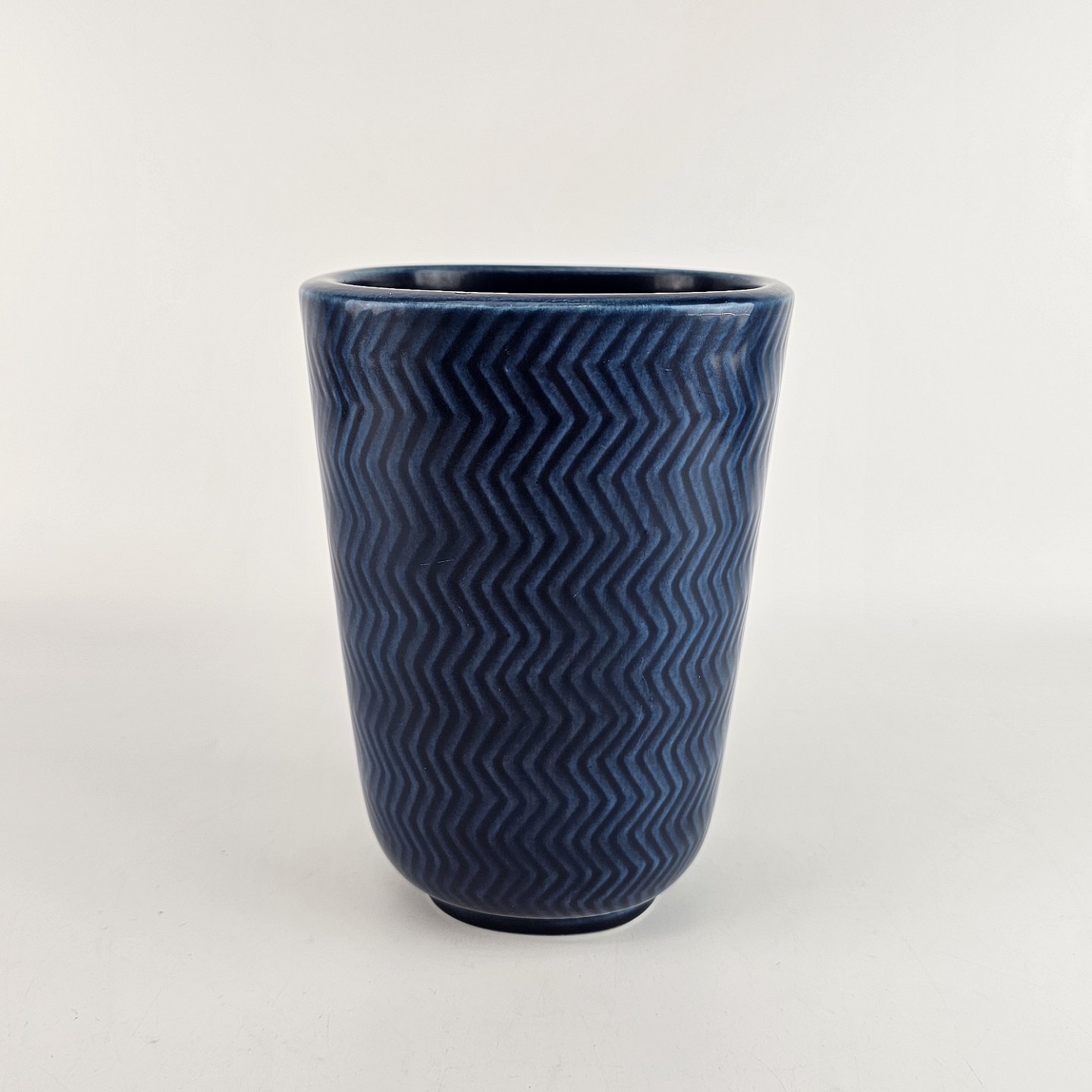 Kantet Marselis vase i mørkeblå fajance med rillet mønster. Nr. 2645
