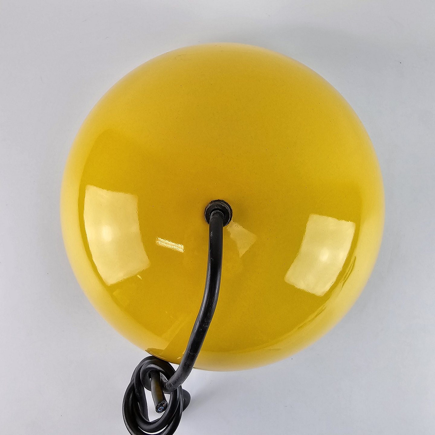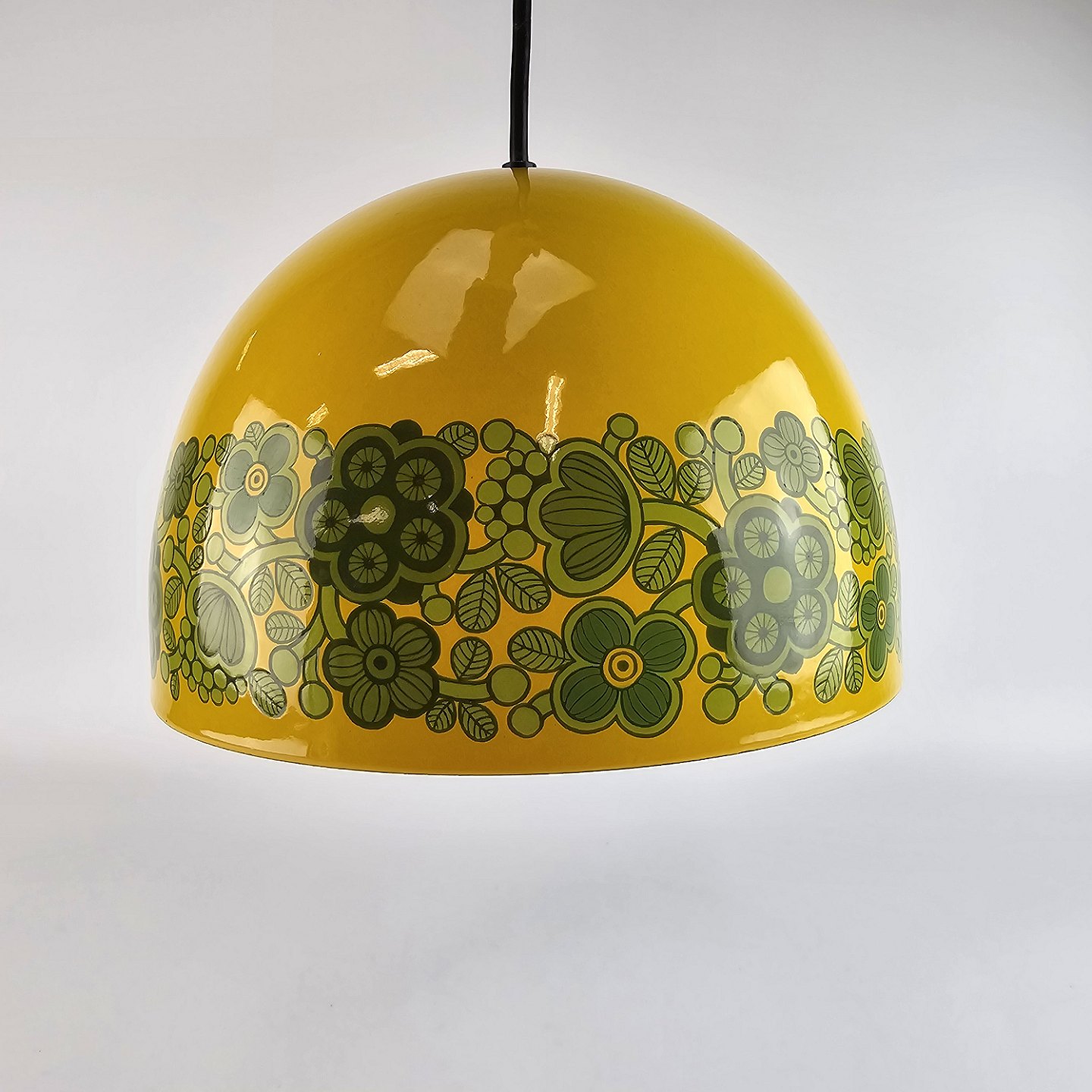 Arabia kalas pendel, i emalje. Gul med grønne blomster.
