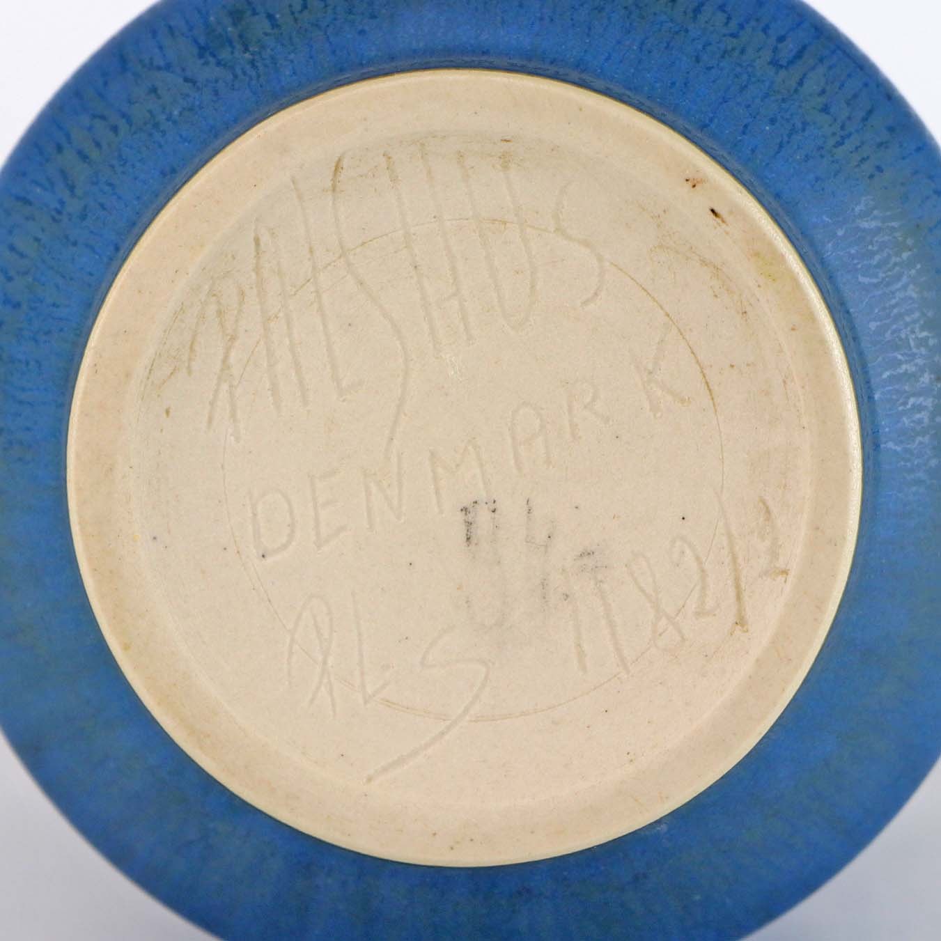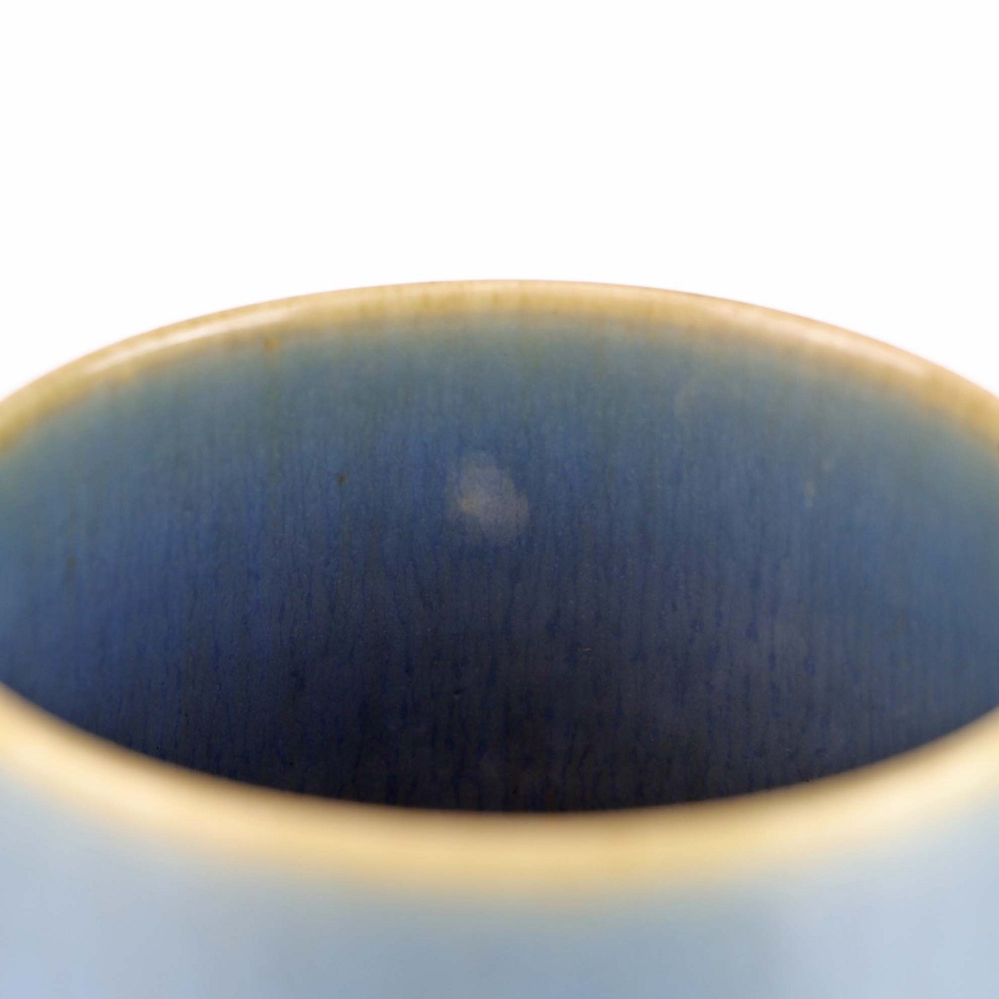 Fremstår med et mindre lyst område i glasuren på vasens inderside