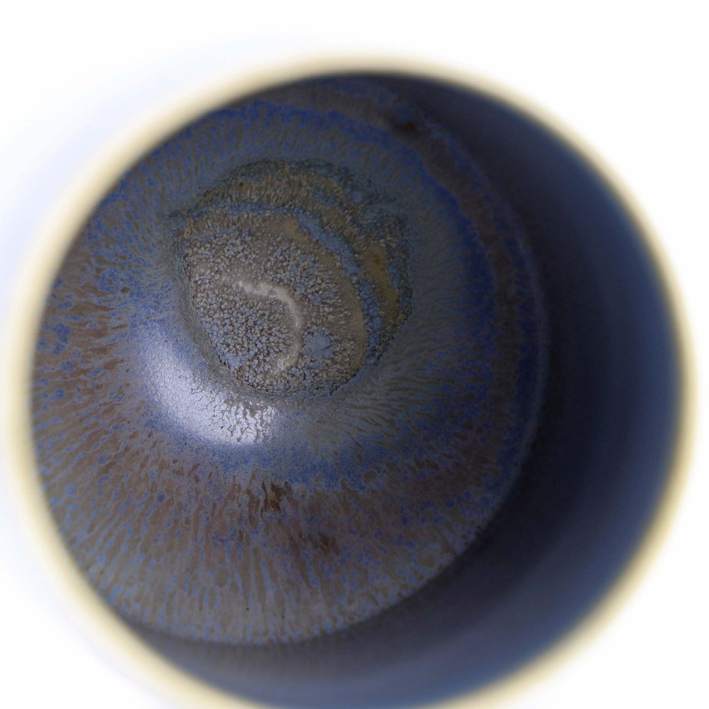 Vase i stentøj med harepels glasur i blå nuance med brunlig top kant. Nr. 1182/2