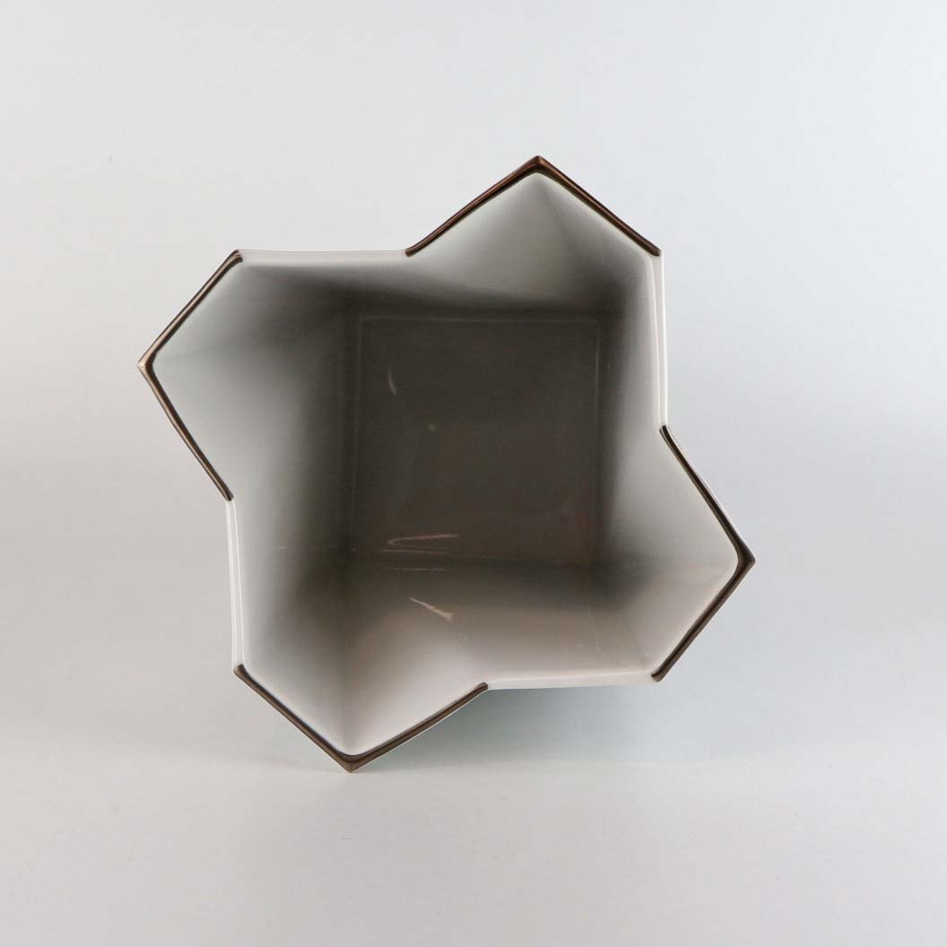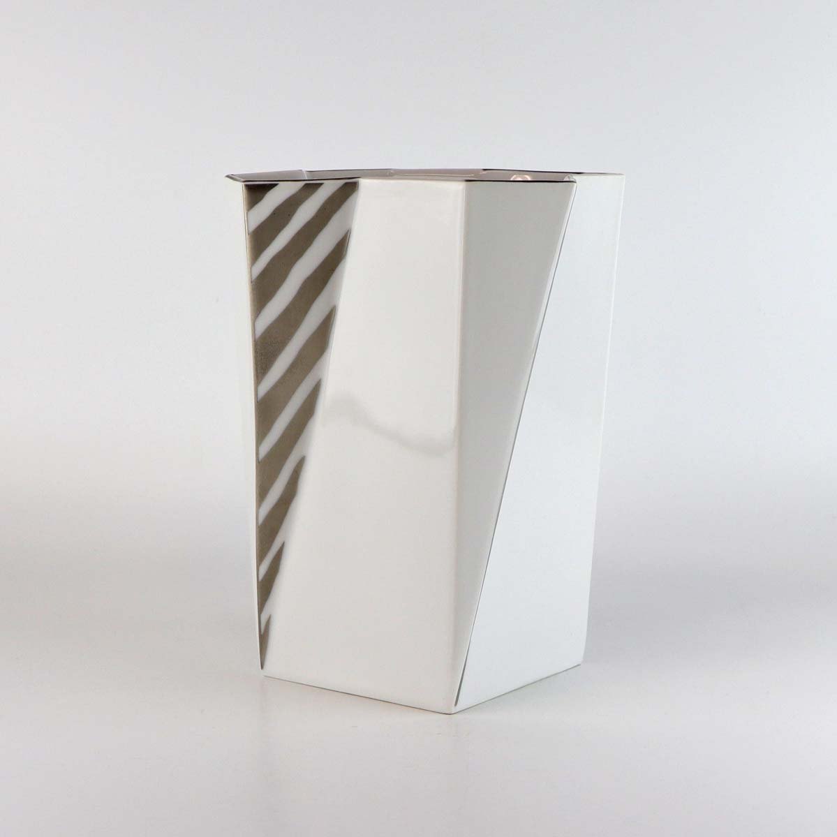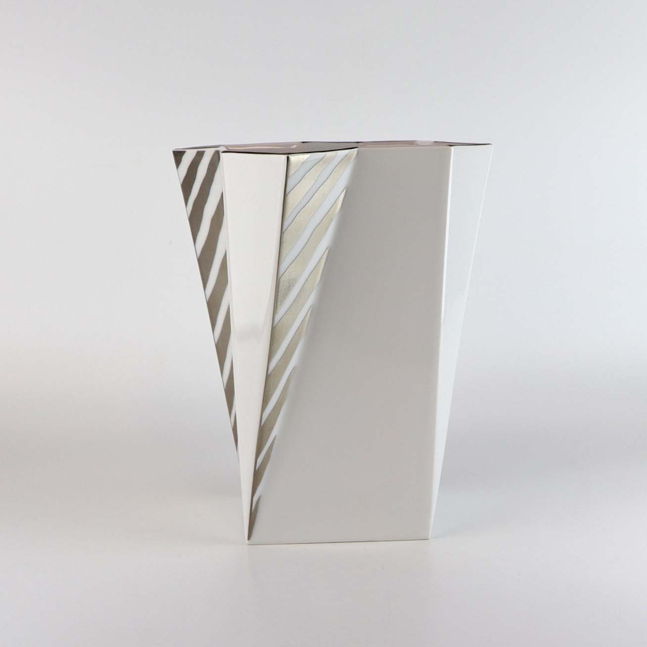 Kantet vase i hvidt porcelæn med sølvgrå stribet mønster. Model Futura. Nr. 1924/5478