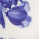 Blå blomst flettet er et hvidt stel med et flettet mønster i kanten og med motiver af blå blomster.