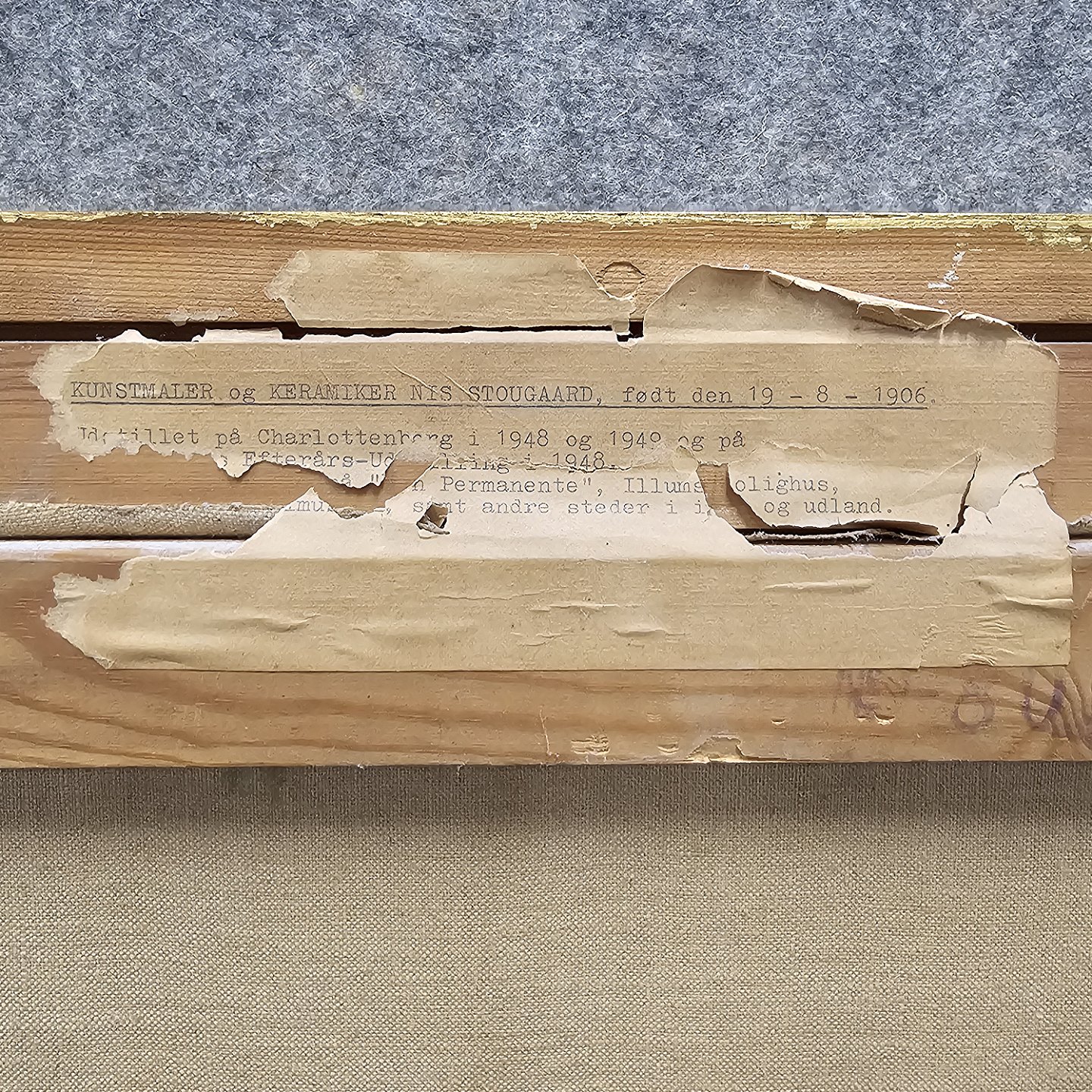 Fremstår med små brugsspor på rammen og en seddel bagpå som fortæller om kunstneren.