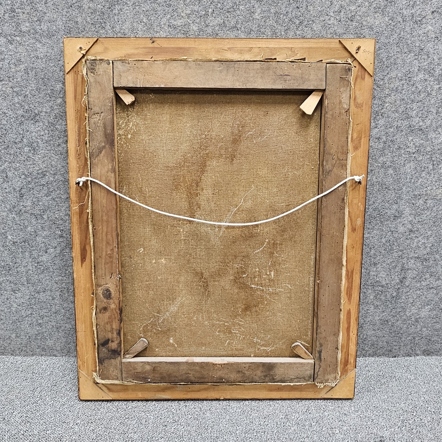 Fremstår med tydeligt slid på både ramme og lærred