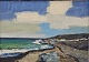 Oliemaleri på lærred med motiv af en strand. Titel "Sommer ved Ejstrup Strand"