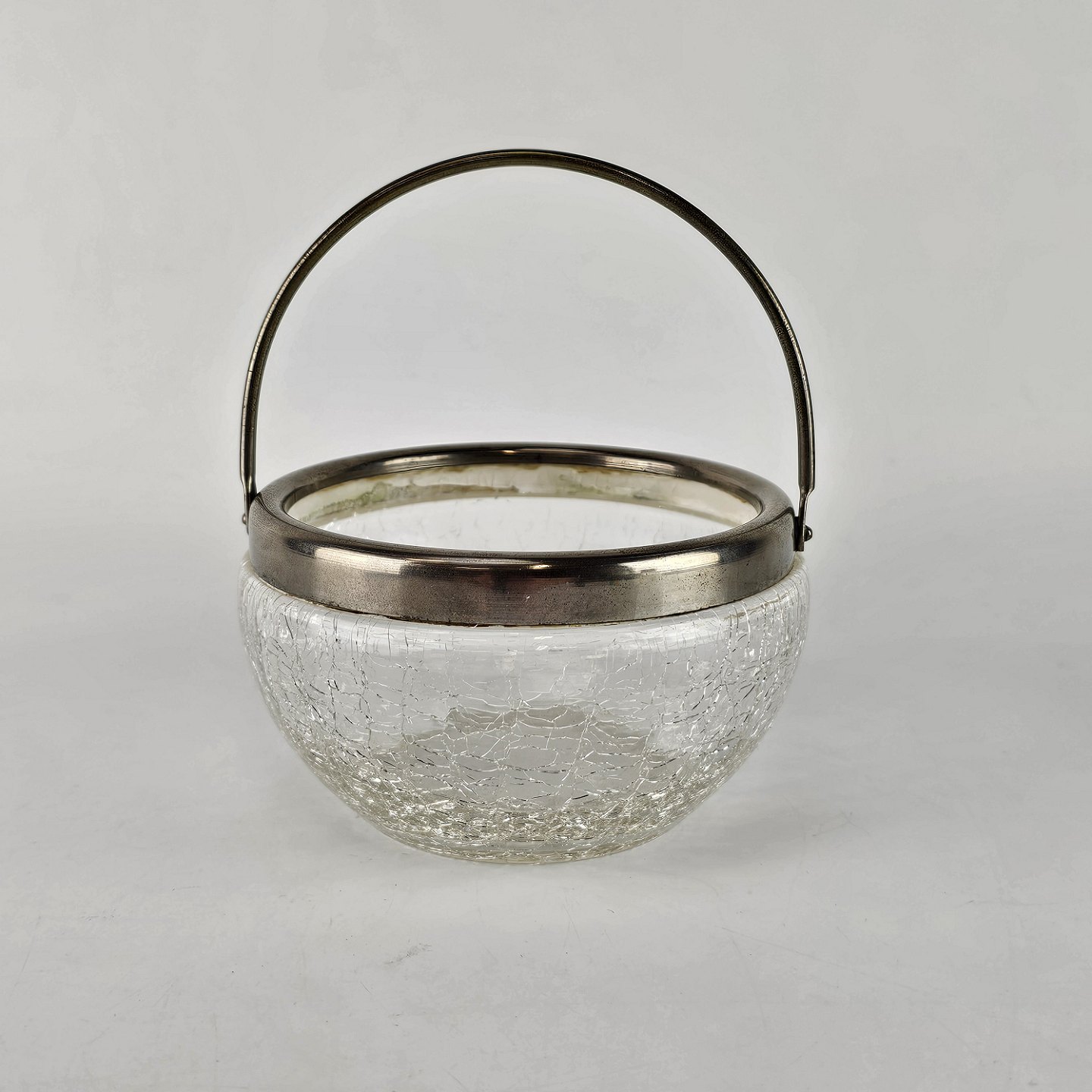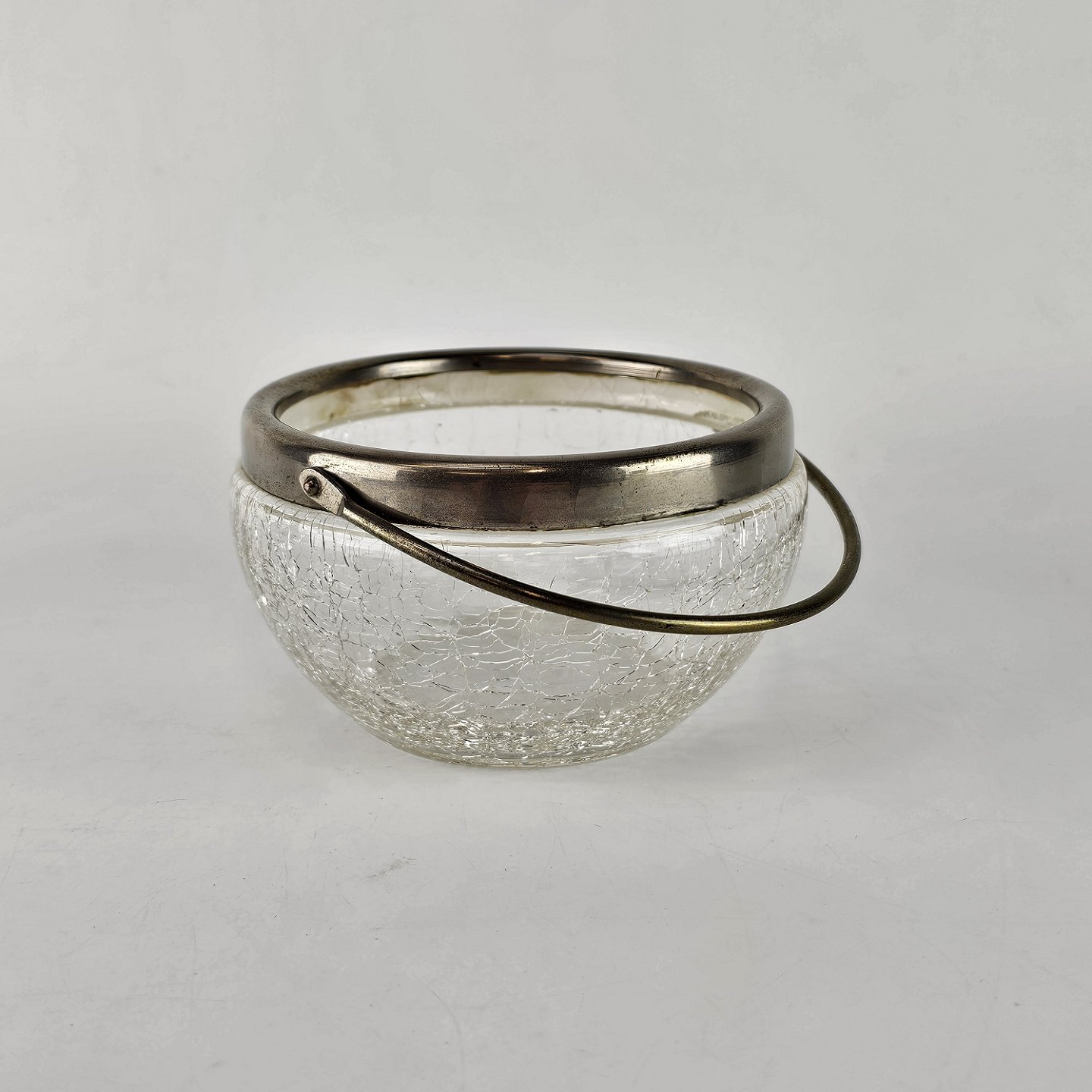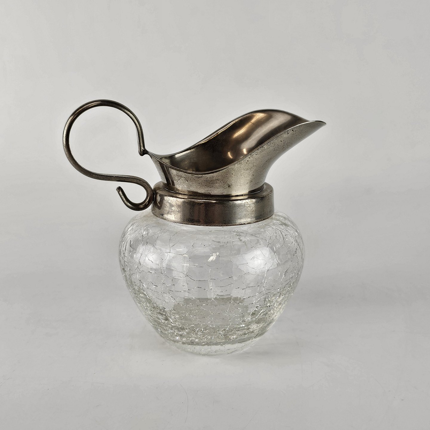 Sæt med flødekande og sukkerskål, begge af krakele glas og med kant af sølvplet