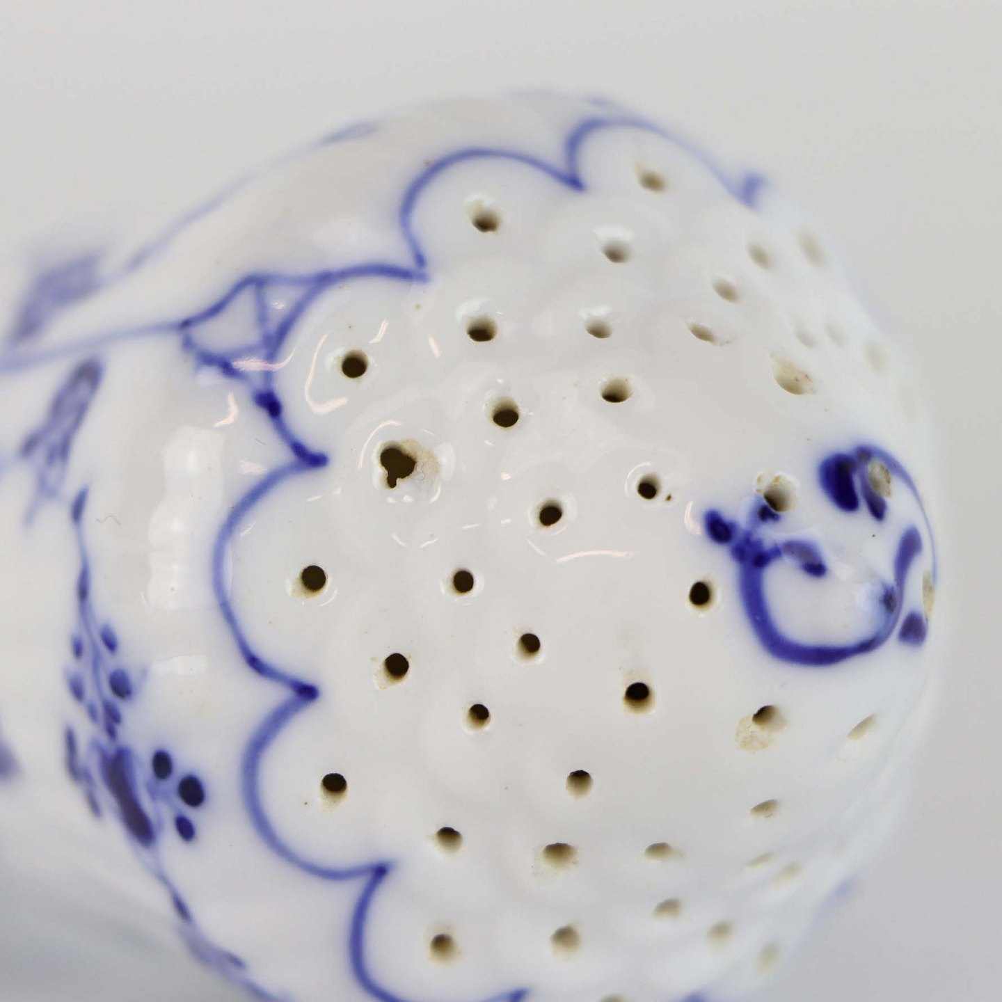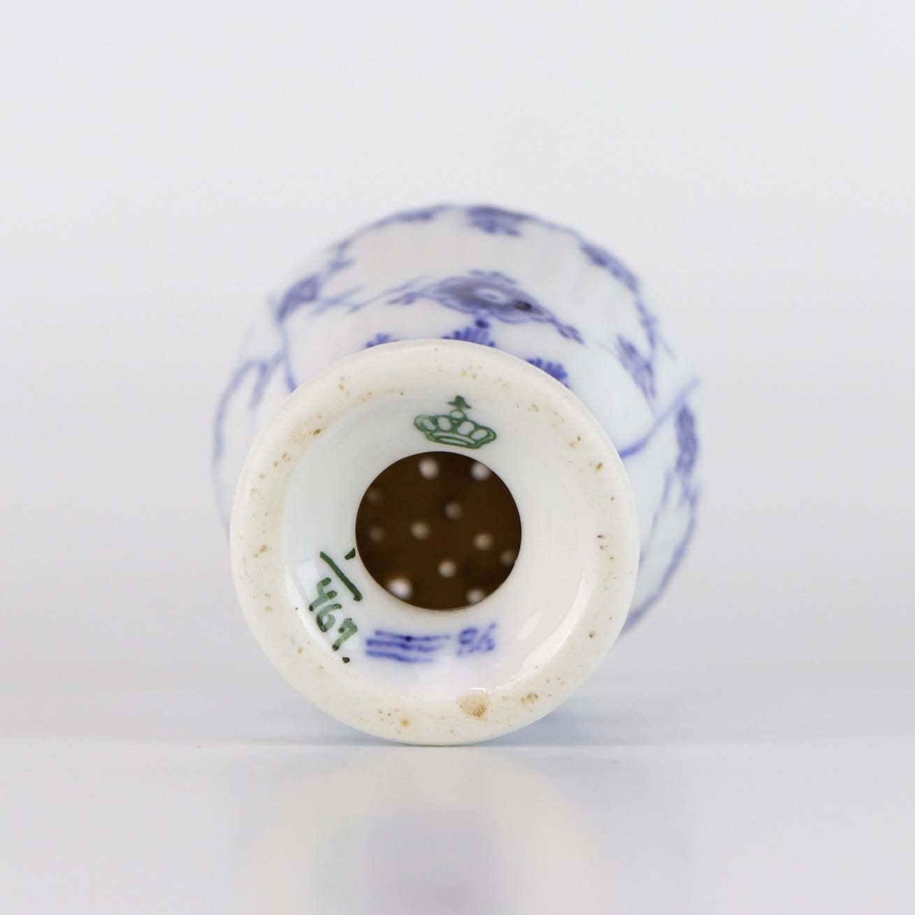 Peberstrø af kongelig porcelæn fra stellet Musselmalet riflet. Nr. 1/469 Peberbøssen er fra slutningen af 1800-tallet