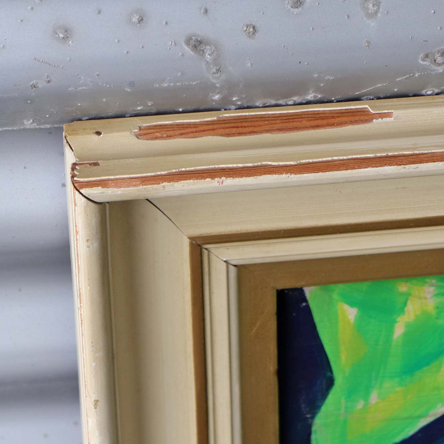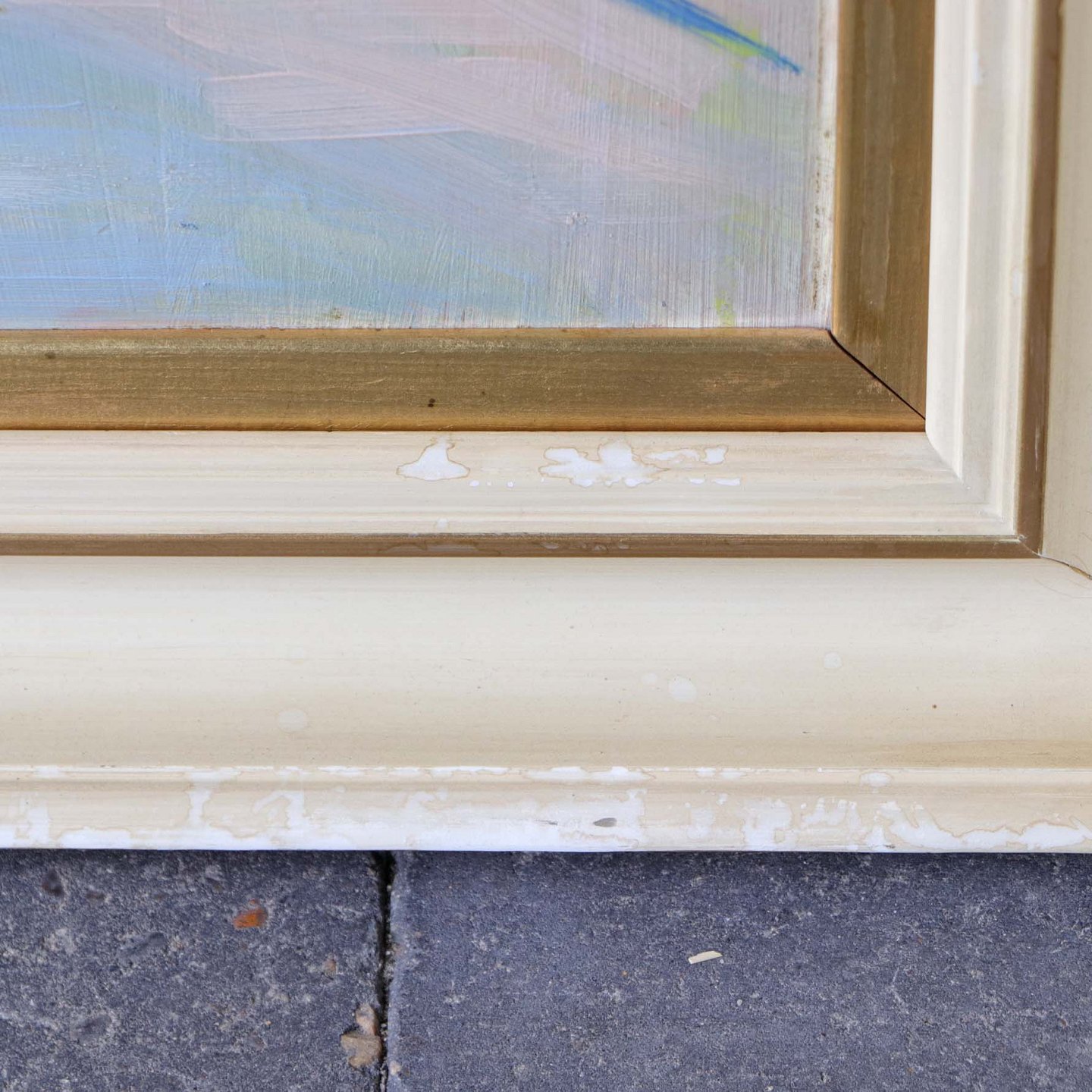 Fremstår med brugsspor på rammens maling samt vandmærker på rammen.