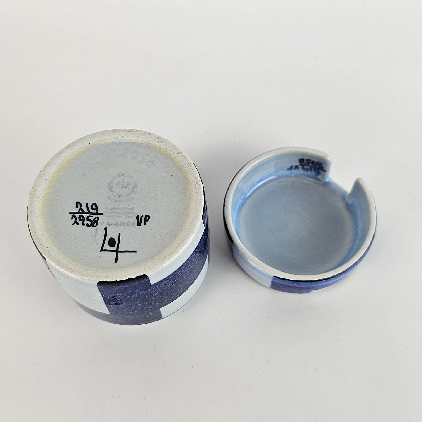 Sennepskrukke med låg, i fajance, fra stellet Tenera. 219/2958.