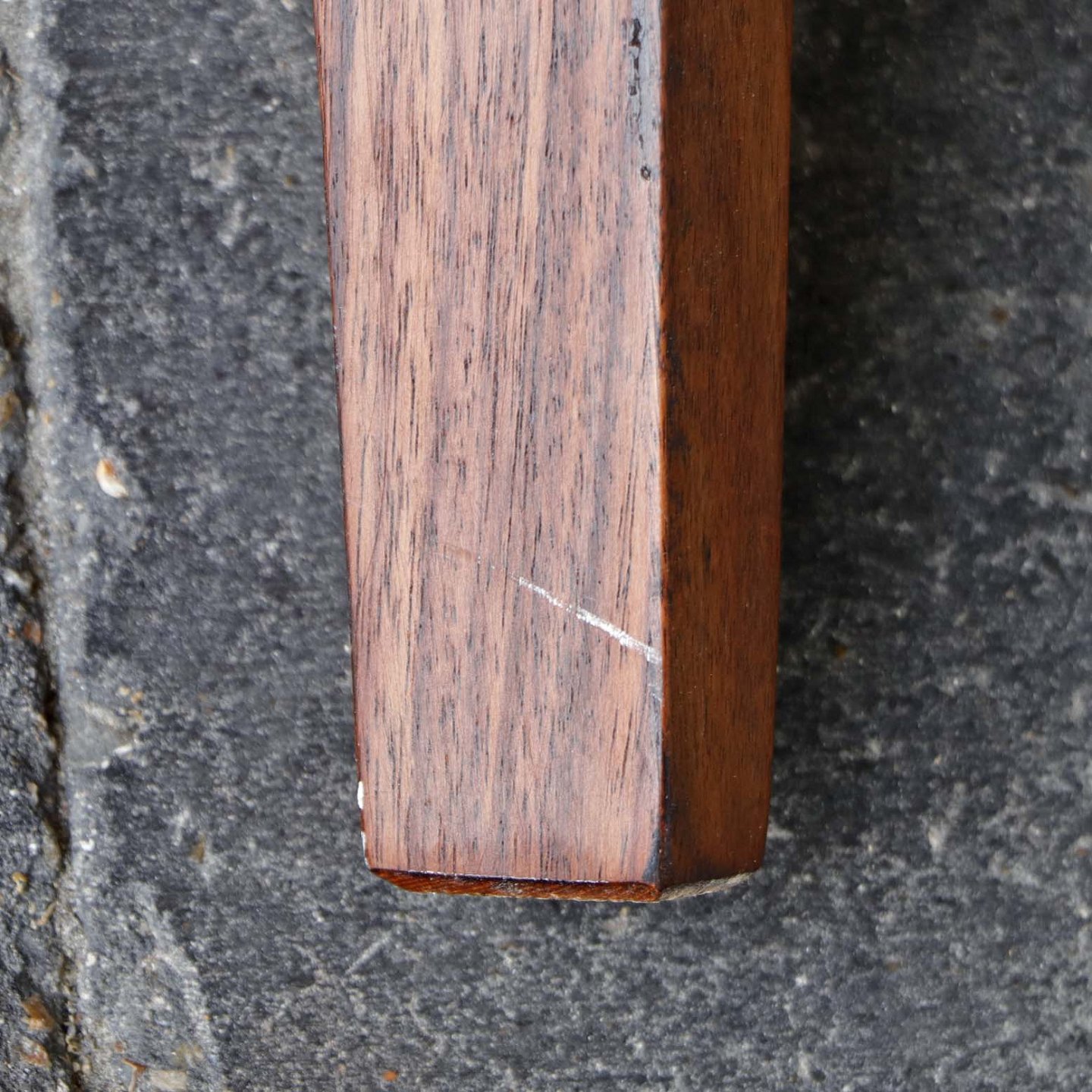 Fremstår med mindre brugsspor på bordets ben samt enkelt mindre lysning ved bordets kant.