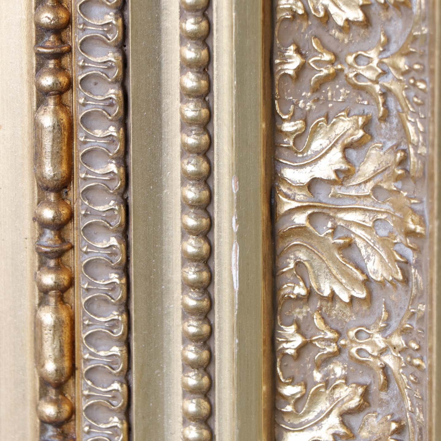 Fremstår med lettere brugsspor på guldmalingen.