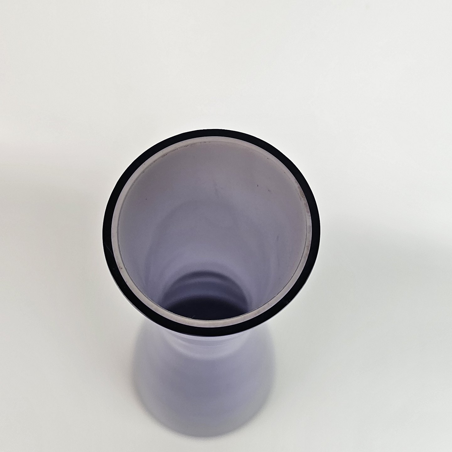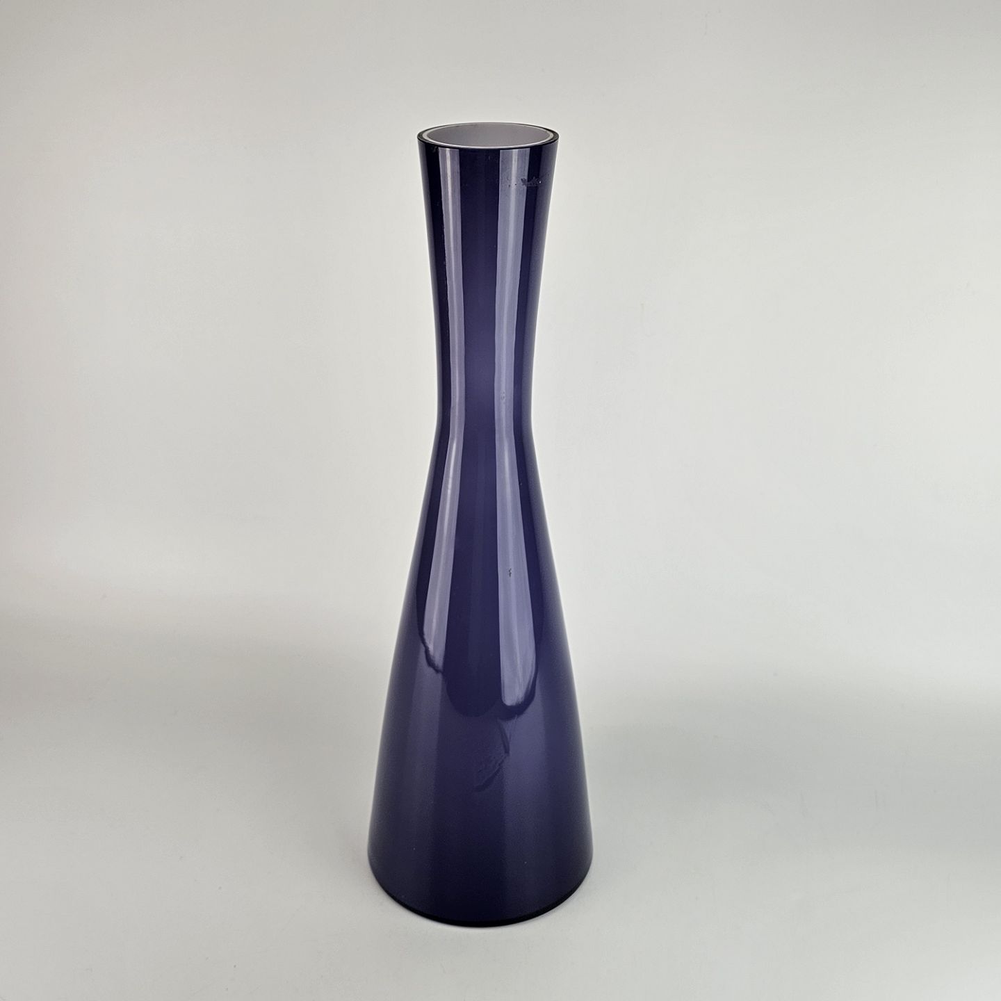 Høj lilla vase i opalineform fra Fyens Glasværk.