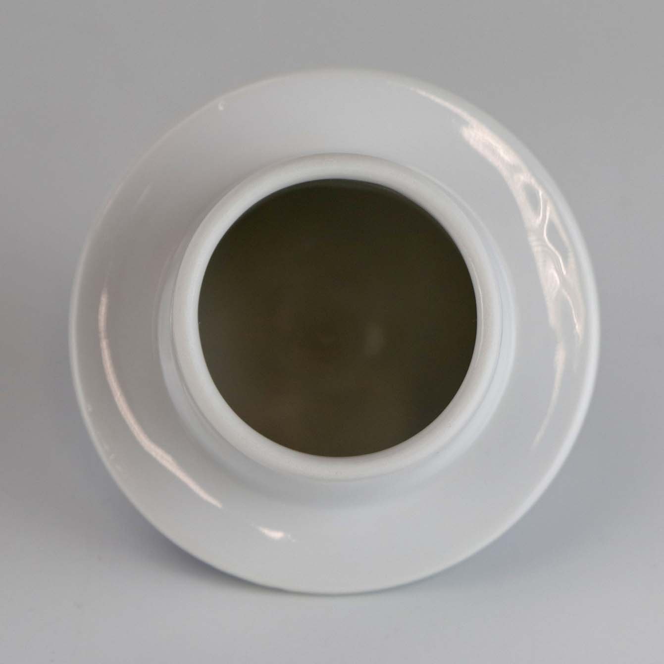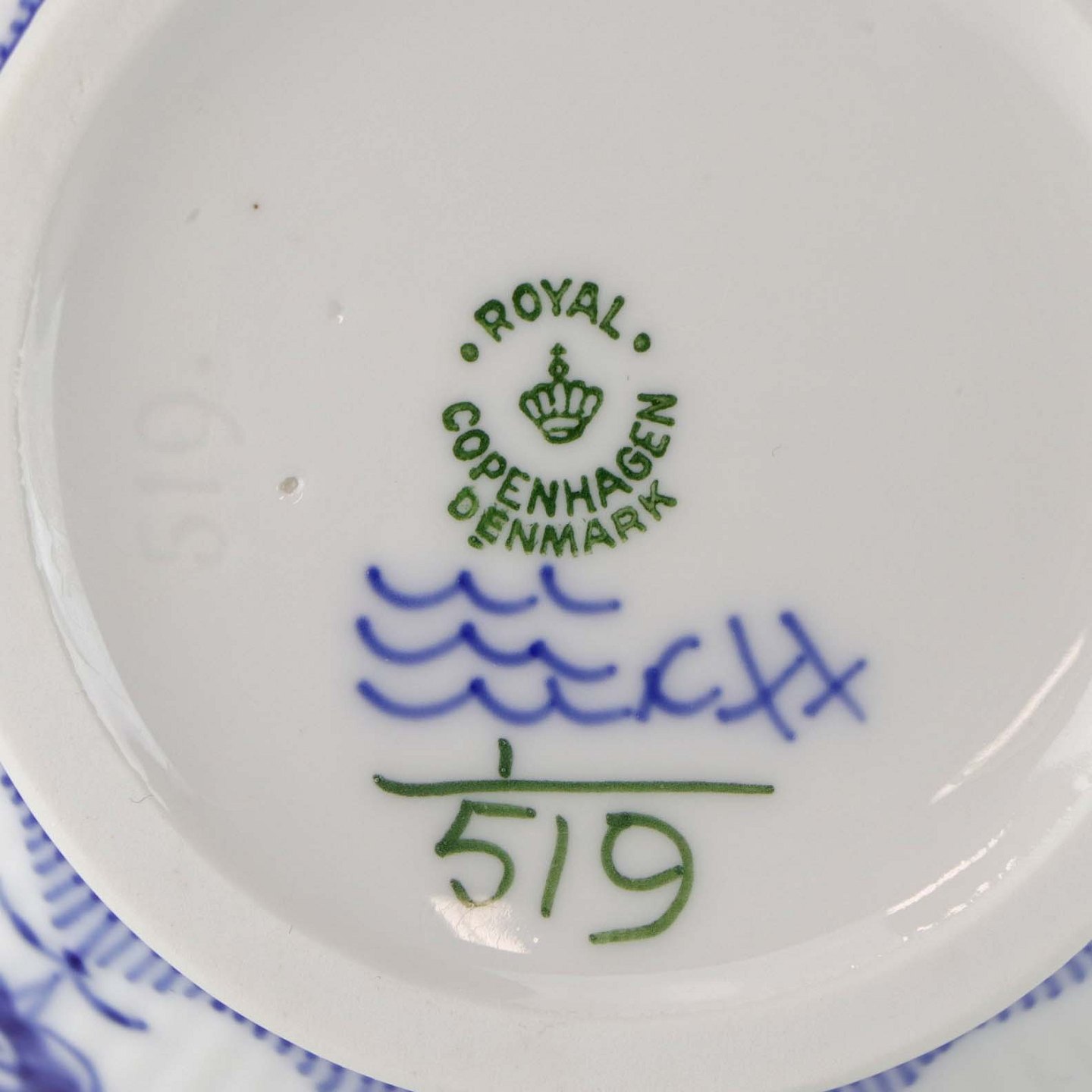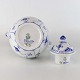 Musselmalet er af kongeligt hvidt porcelæn, dekoreret med rifler og mønster af blå ranker og blomster