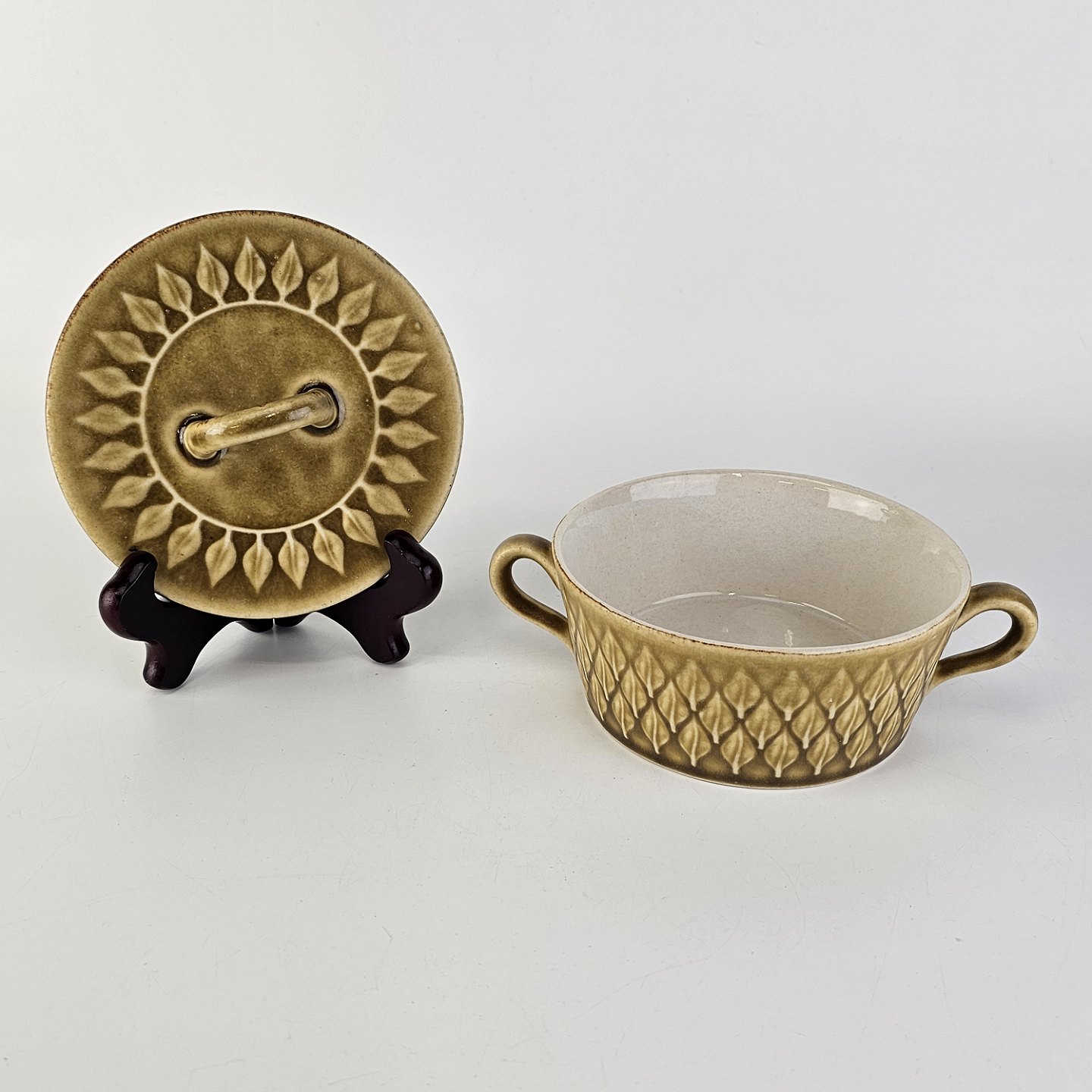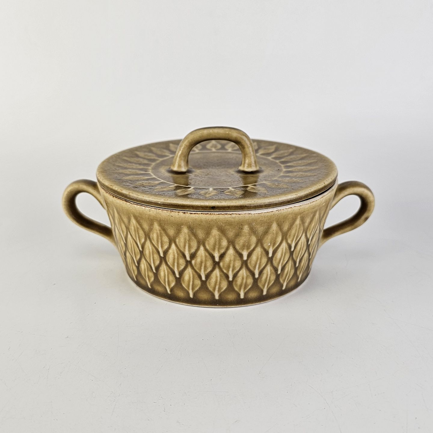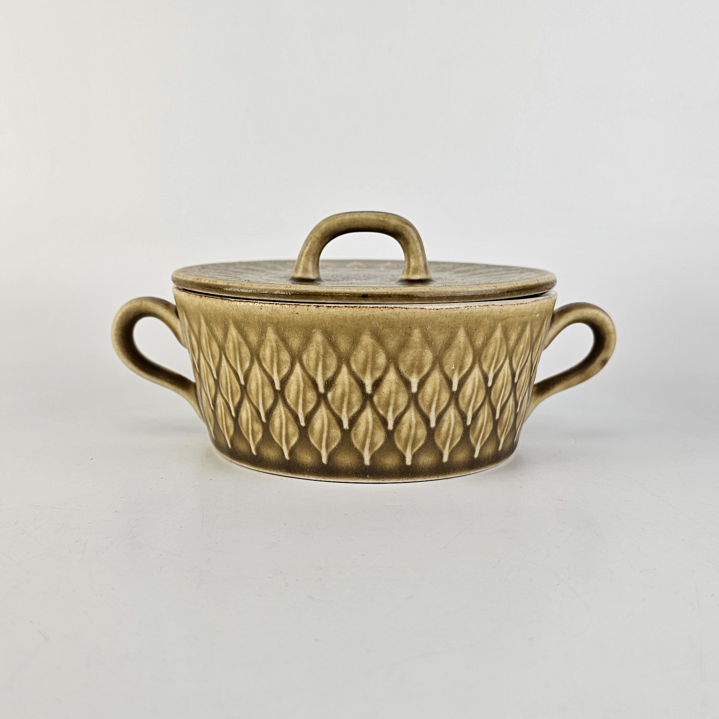 Boullionkop med låg, i stentøj fra stellet Relief