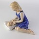 Figur i porcelæn med motiv af siddende ung kvinde med hendes lille barn liggende på en pude. Nr. 543