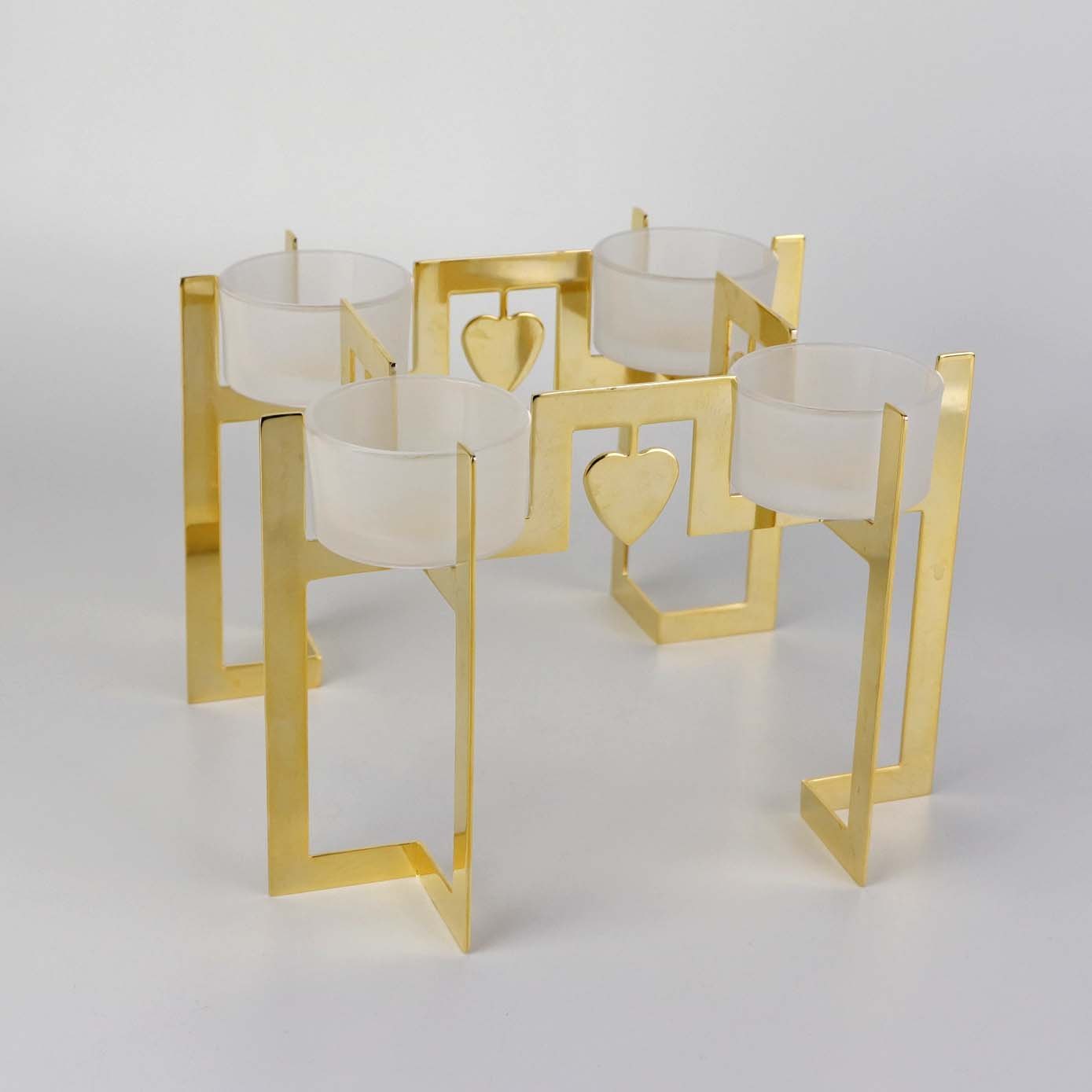 Forgyldt lysestage til advent som kan bruges til både fyrfadslys og kronelys fra serien Golden Christmas. Stagen kommer i original boks.