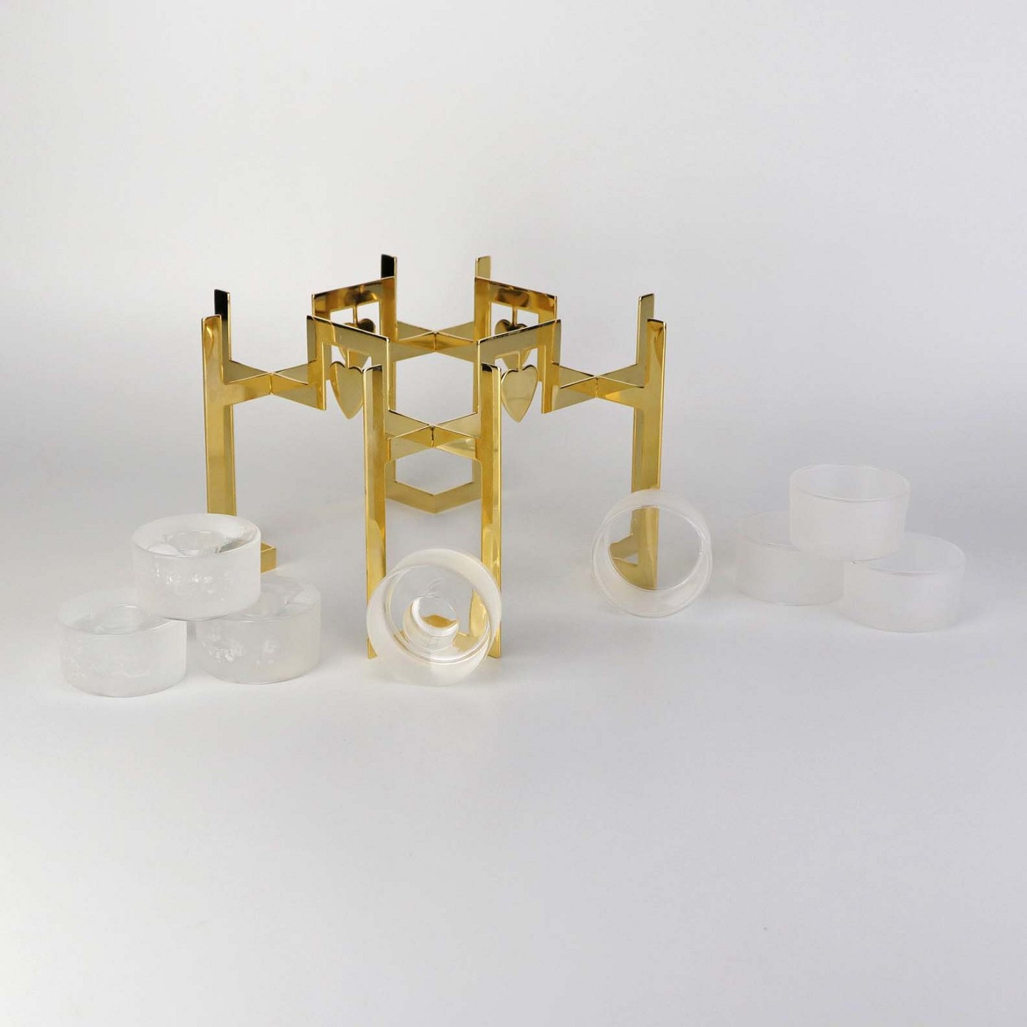 Stagen kommer med to sæt. Et sæt på fire styk til fyrfadslys og et sæt på fire styk til krone stearinlys.