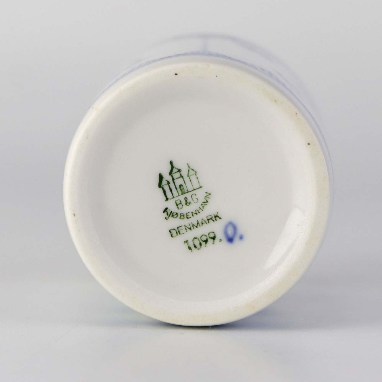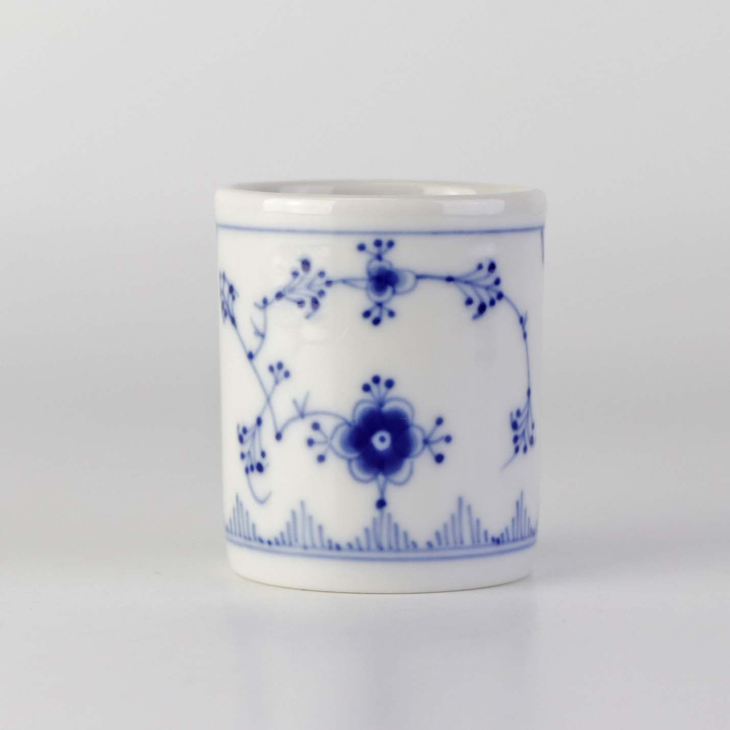 Cylinderformet tandstikholder i hotelporcelæn fra stellet Blåmalet. Nr. 1099