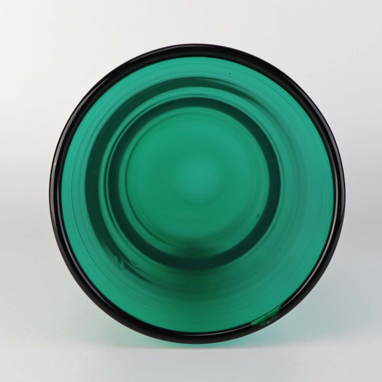 Fremstår med støbningsboble i glasset samt brug spor under bund. Kugleslebet i bund.