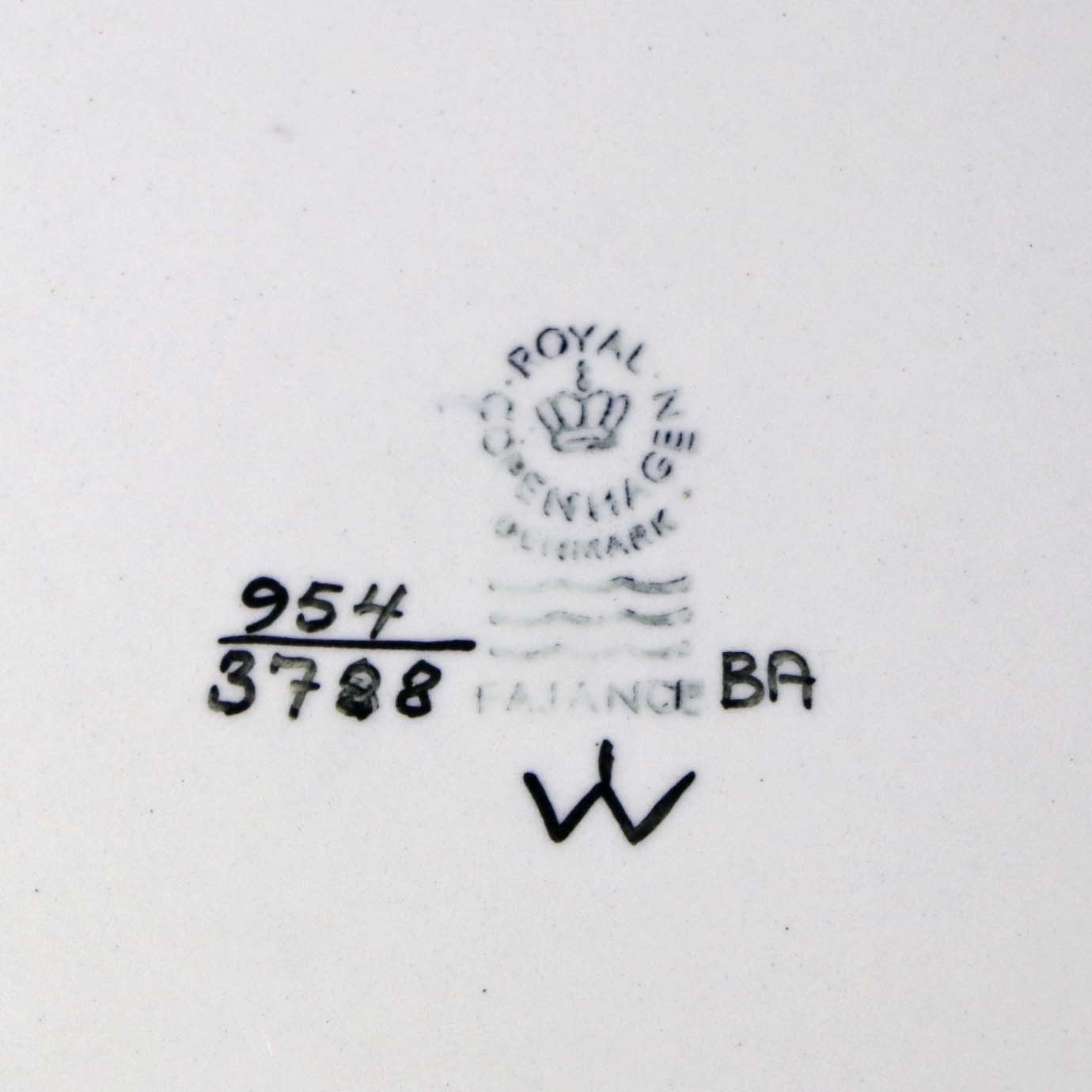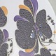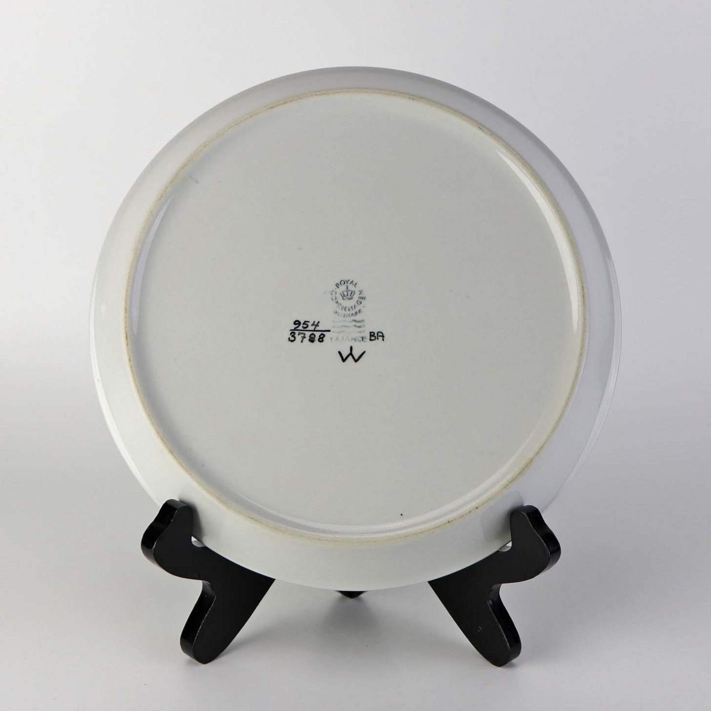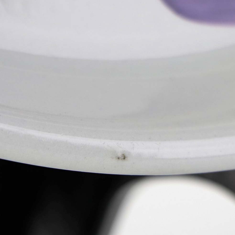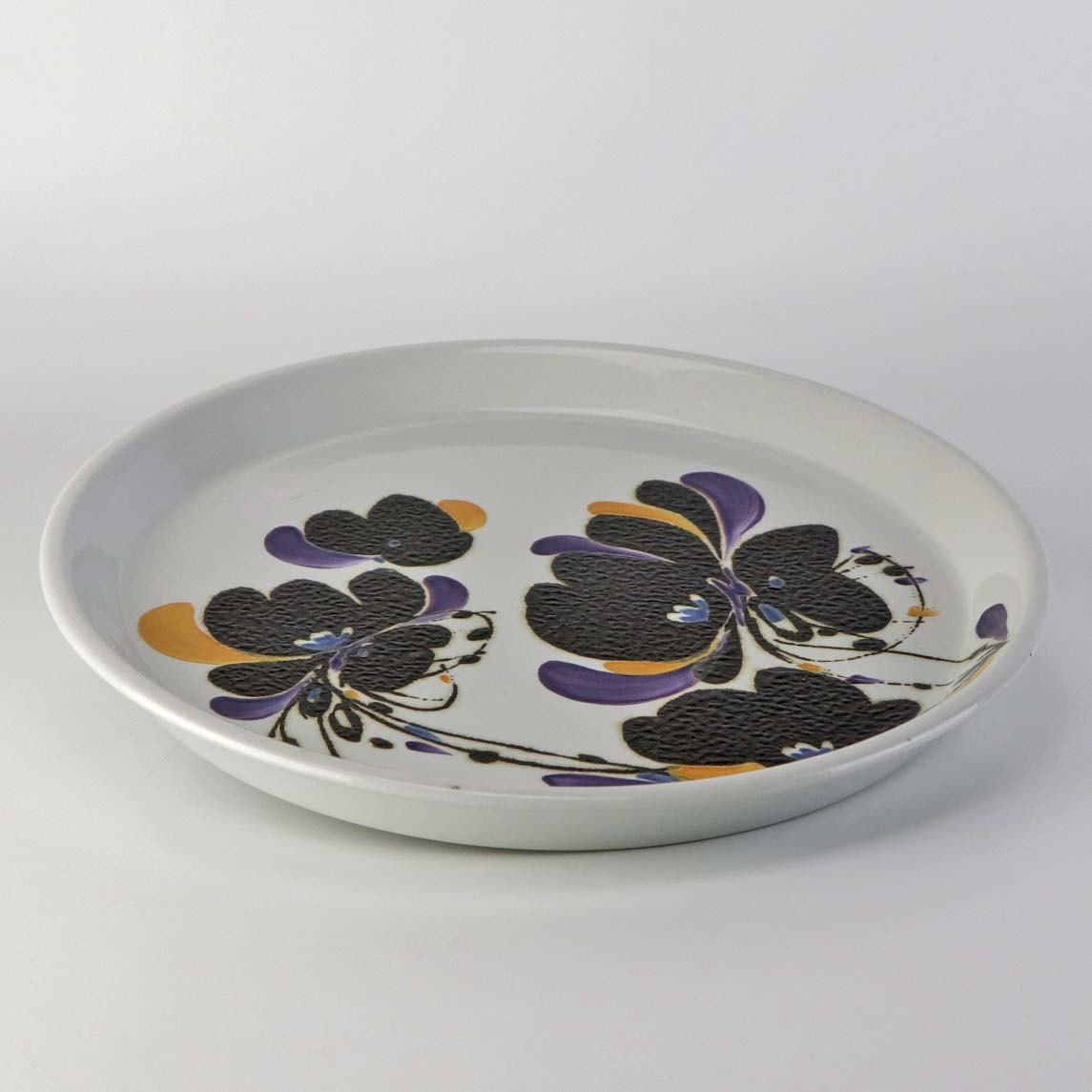 Lav rundt bordfad i fajance fra Tenera serien med motiv af blomster i sort, gul og lilla. Nr. 954/3788