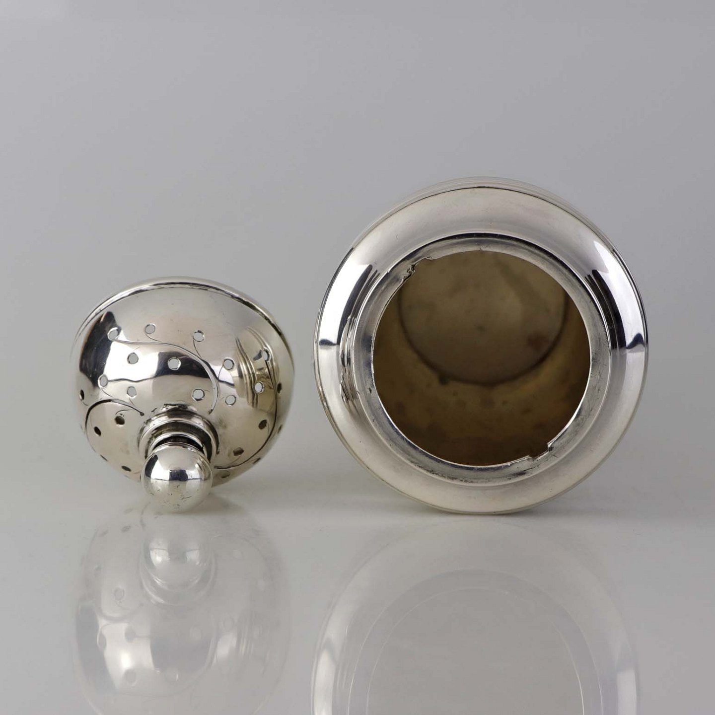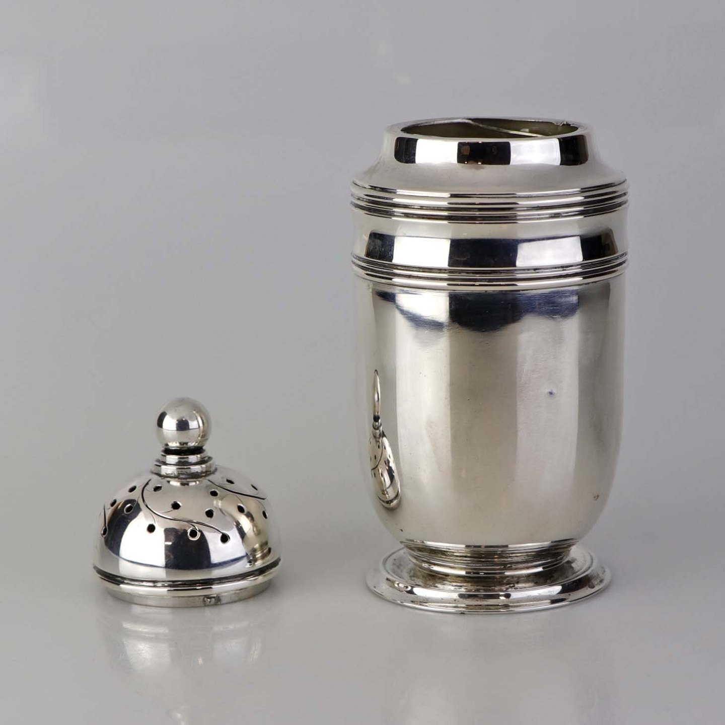 Sukkerstrø i tretårnet sølv med aftageligt låg.