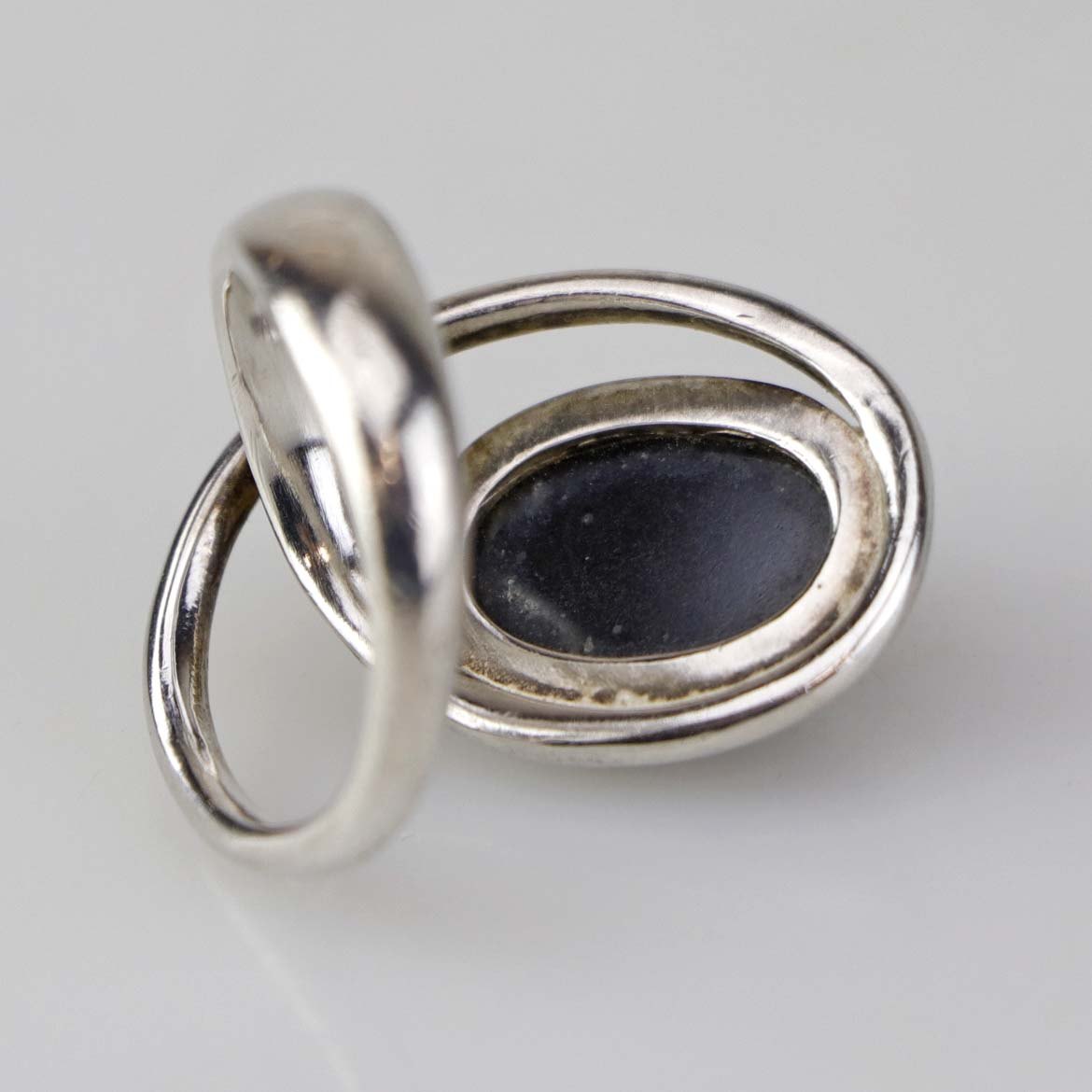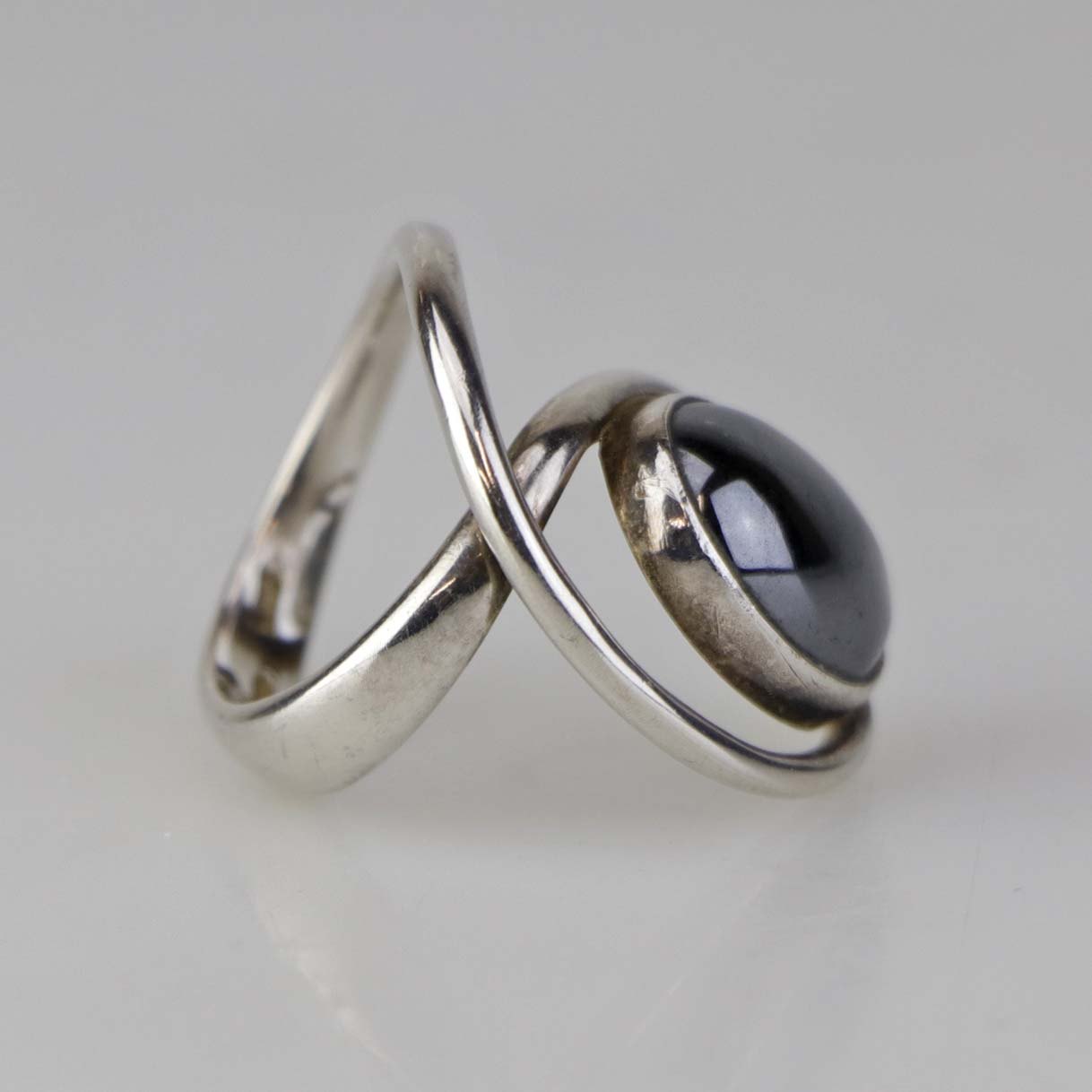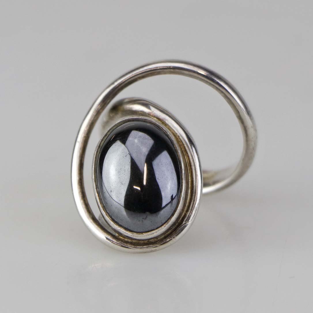 Ring i sterling sølv med poleret oval blodsten - også kendt under navnet hæmatit. Størrelse 52