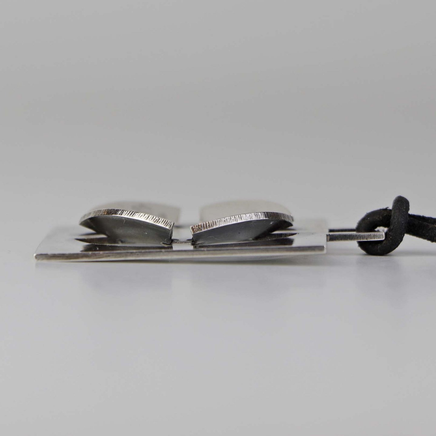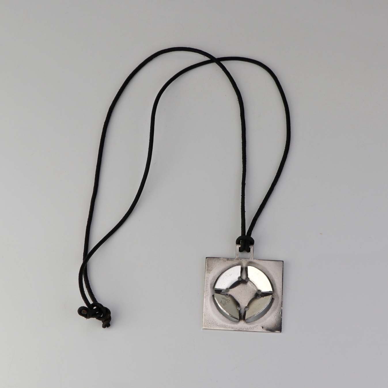 Halskæde med lædersnor og kvadratisk vedhæng i sterling sølv.