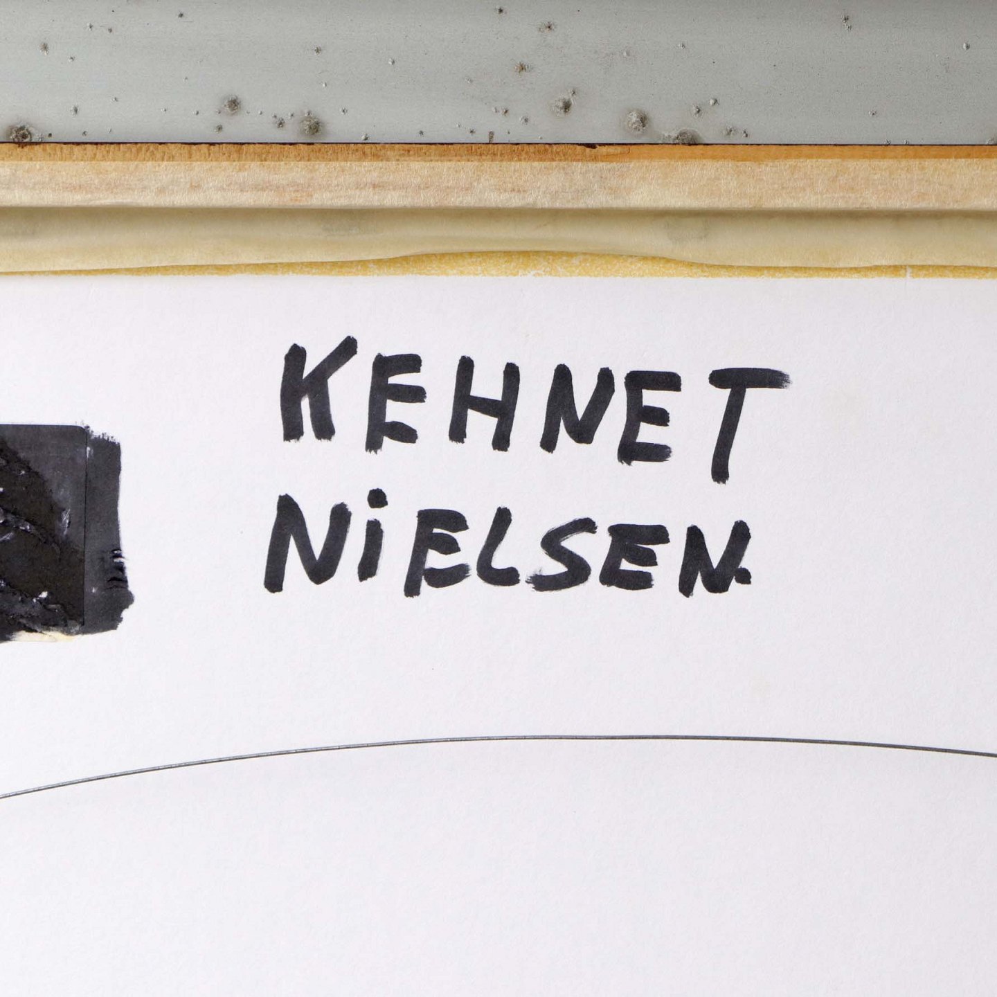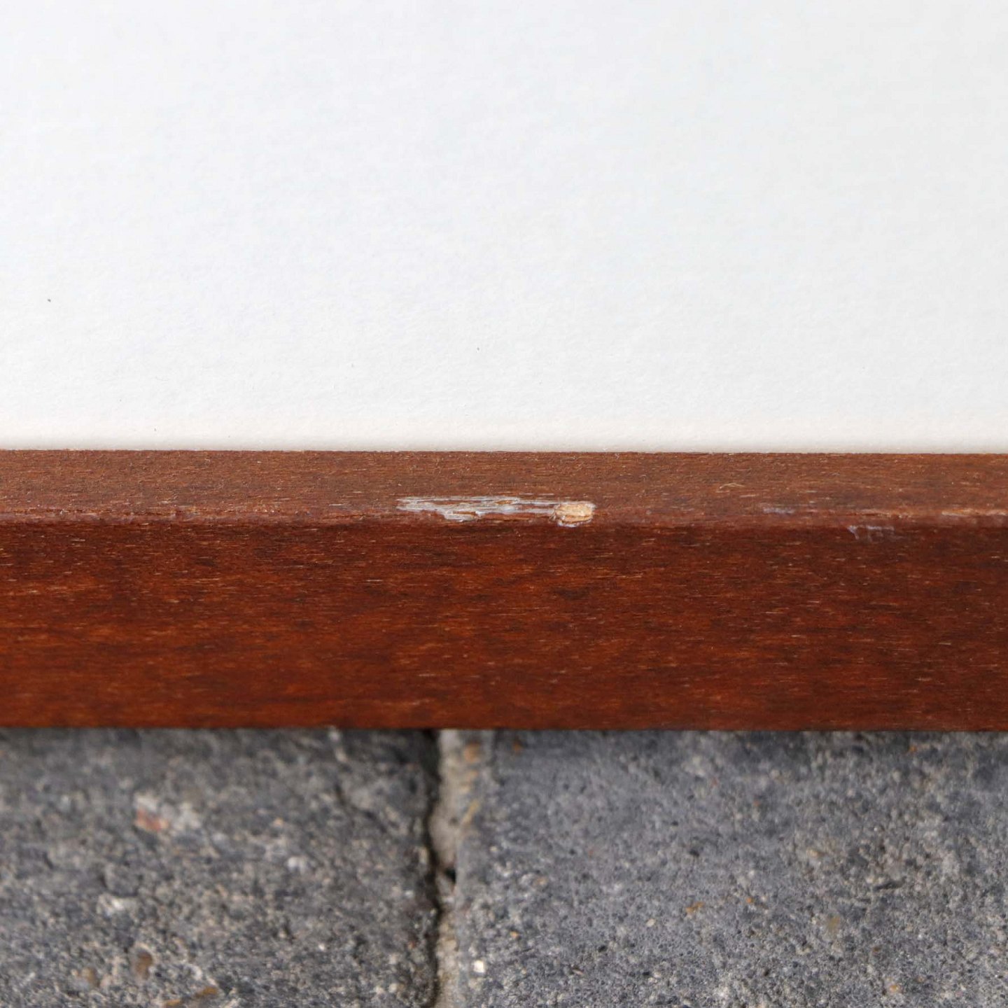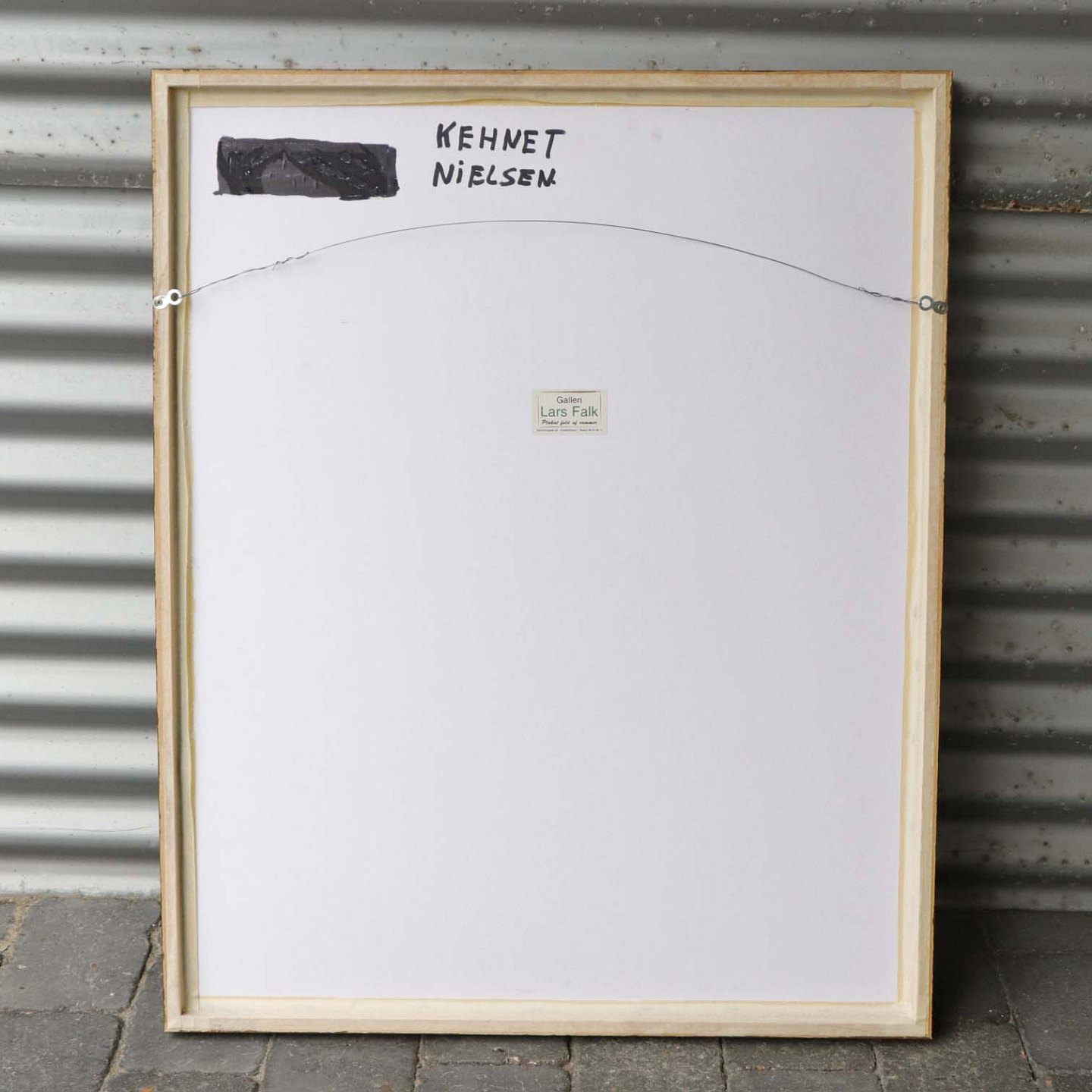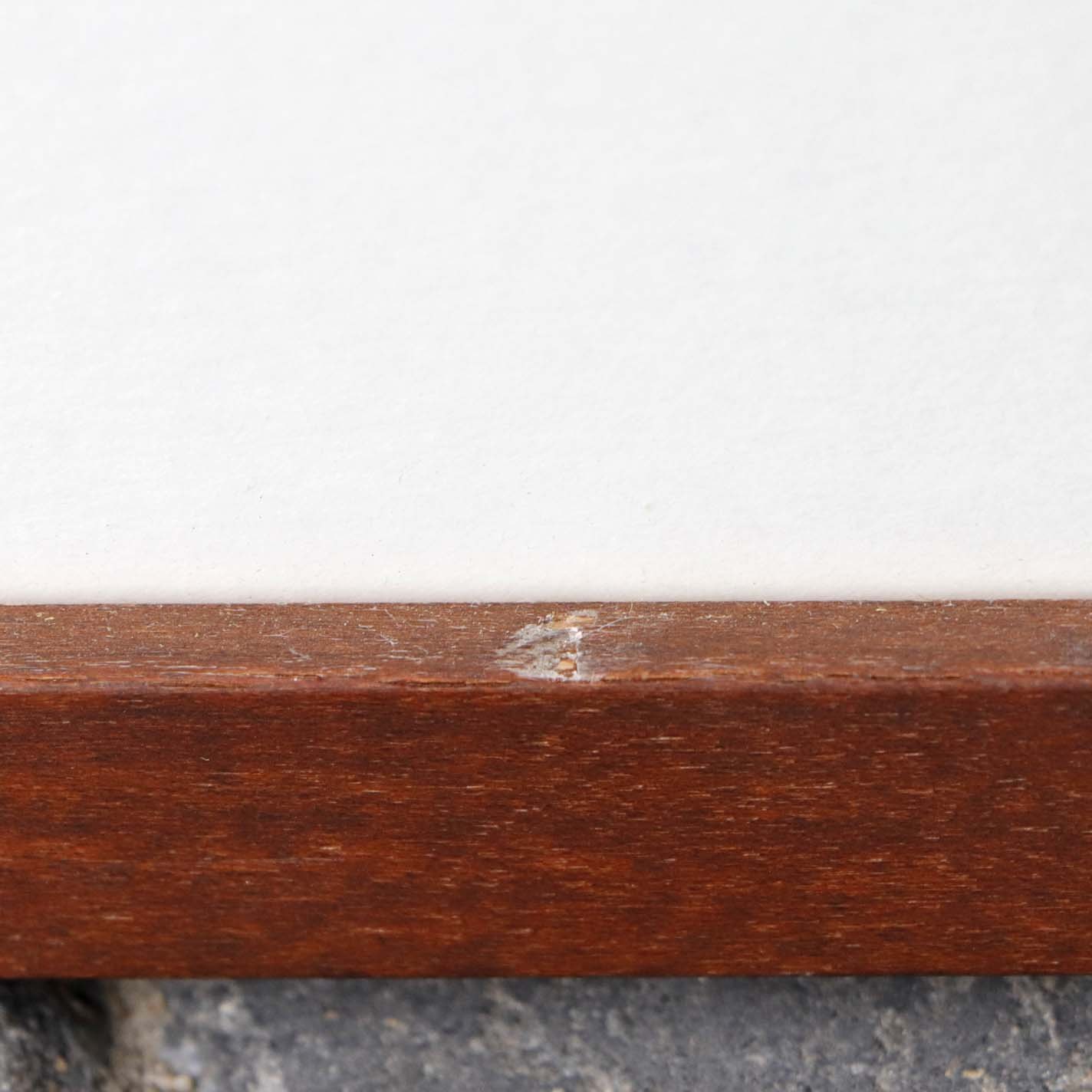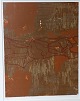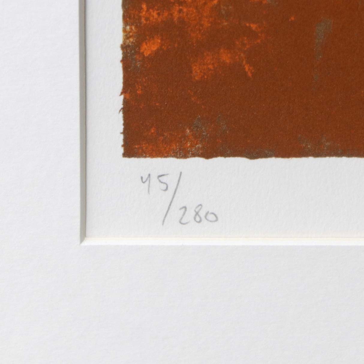 Indrammet litografi med passepartout i mørkmalet træramme med abstrakt motiv i jordfarver fra år 2002. Nr. 45 af 280 eksemplarer.