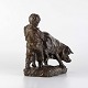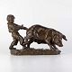 Figur i brunmalet bronze med motiv af dreng, som trækker en gris i halen.