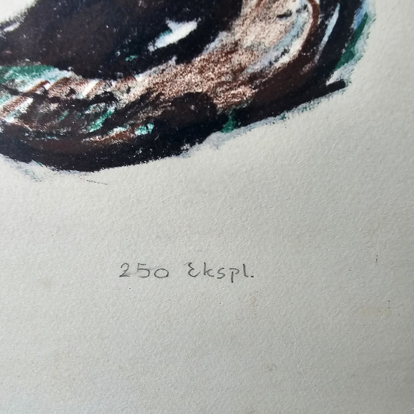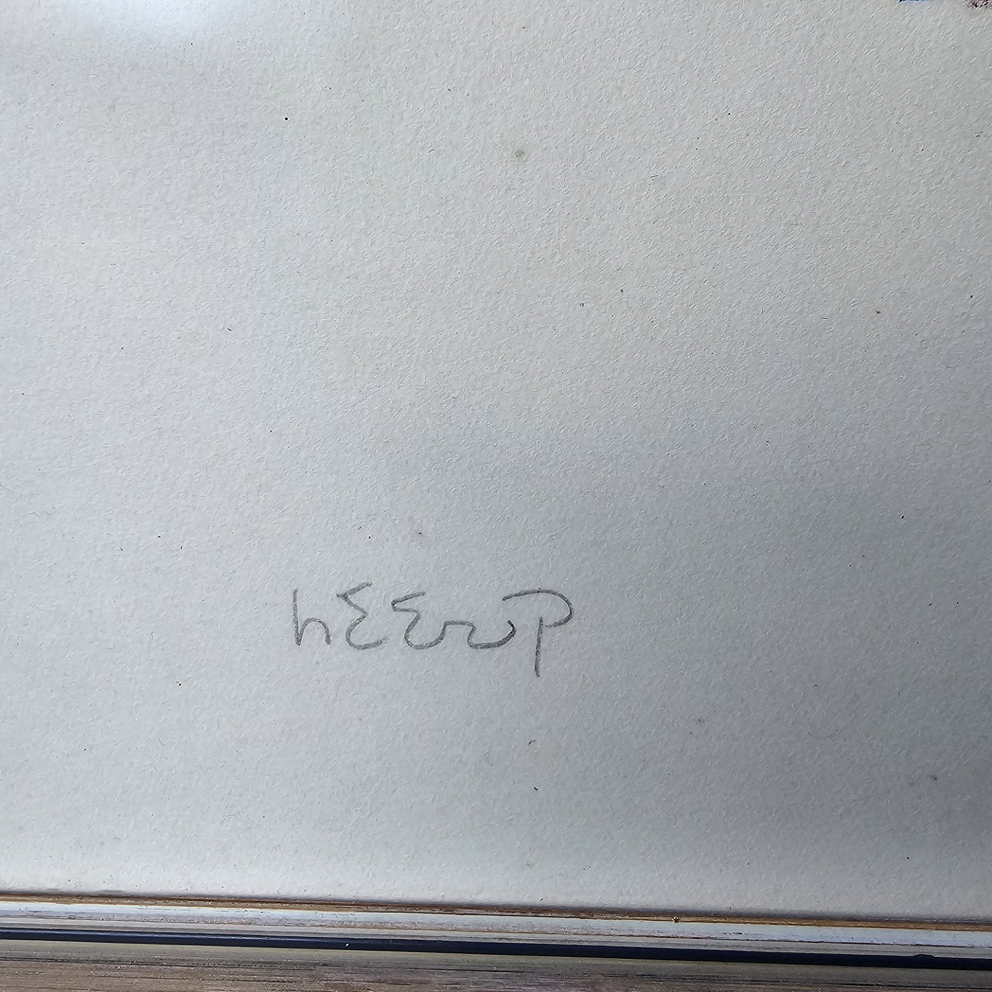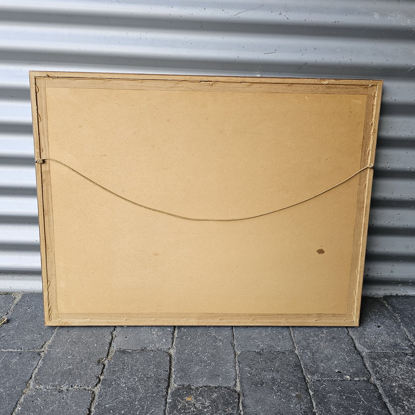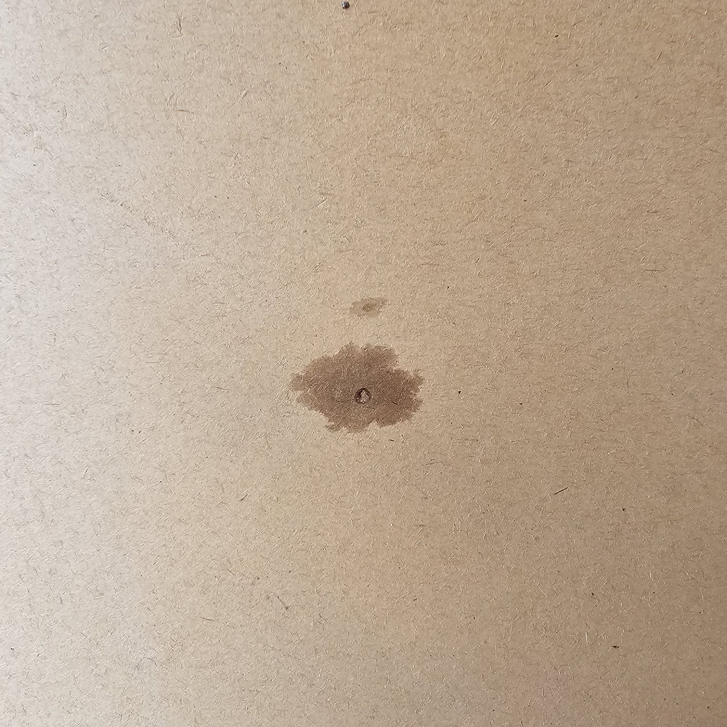 Fremstår med en lille plet på forsiden, en større plet på bagsiden, og en skramme på rammen