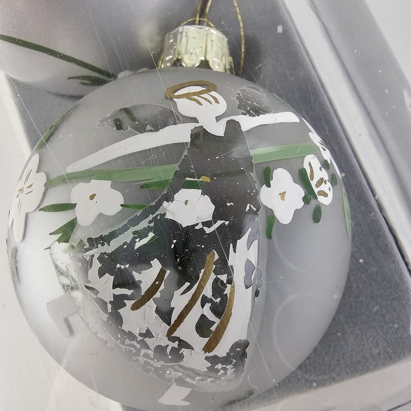 Motivet er beskadiget på en af kuglerne