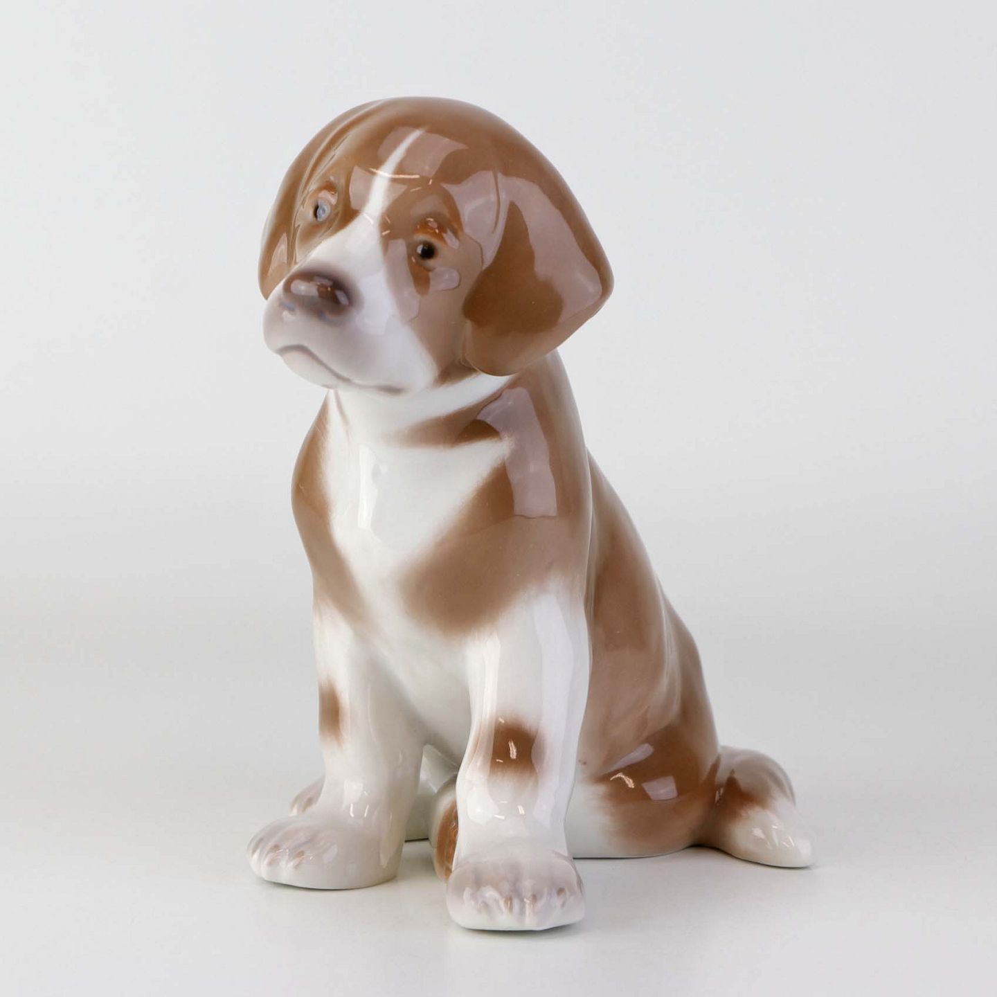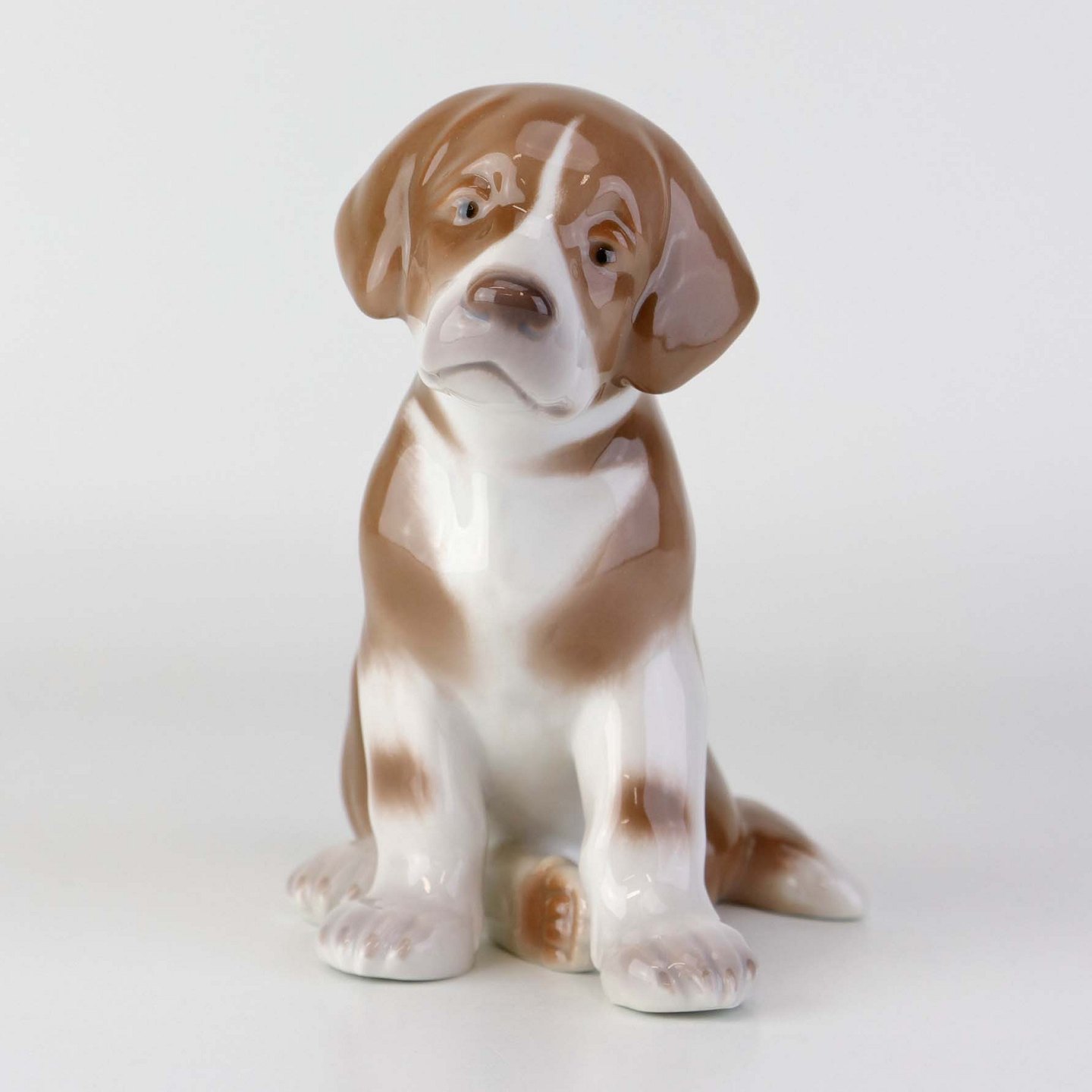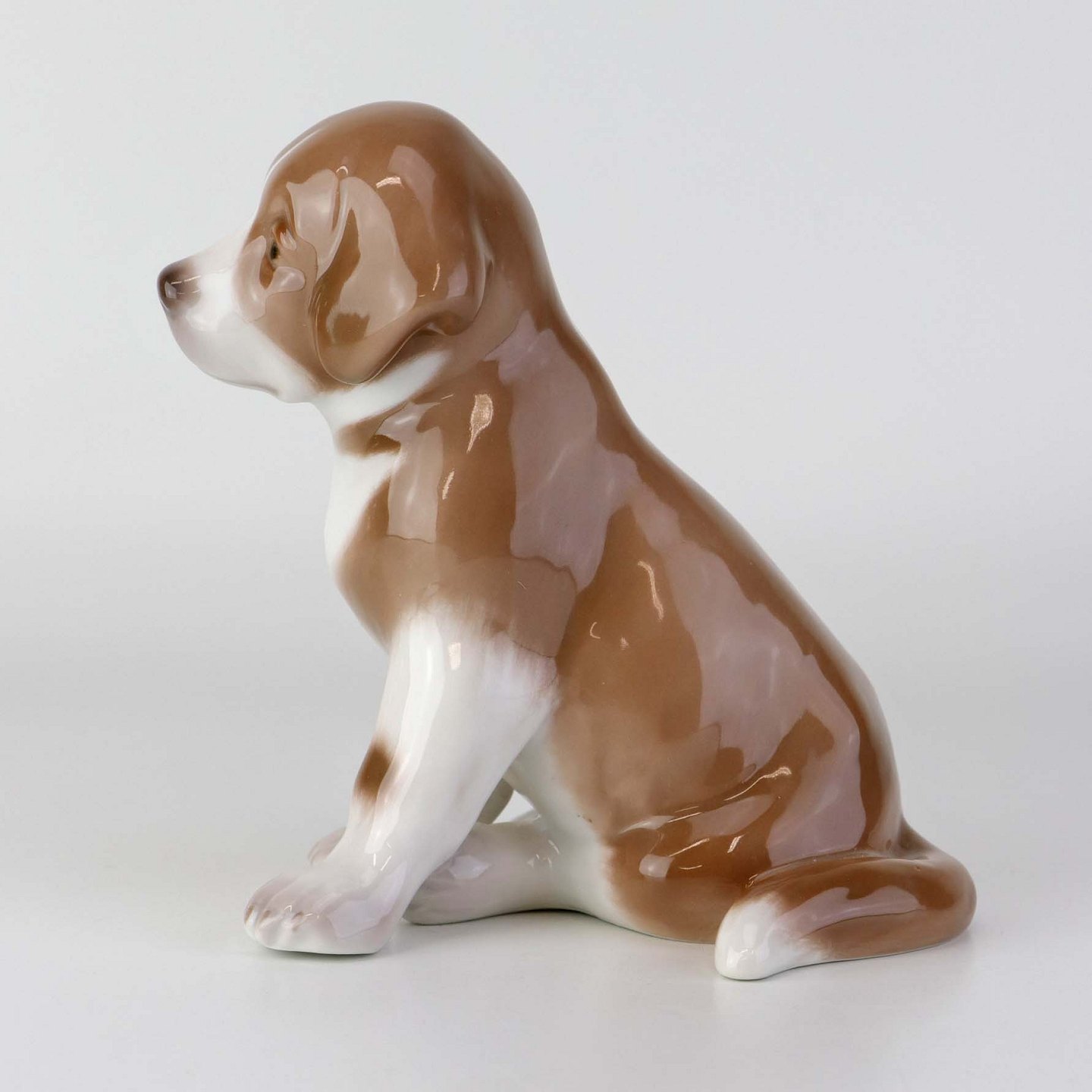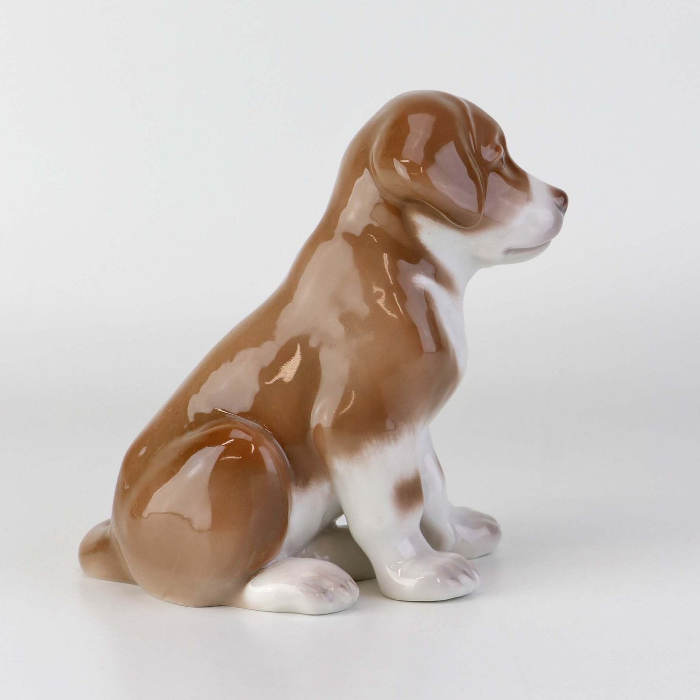 Figur i porcelæn med motiv af siddende St. bernhardshvalp. Nr. 1926