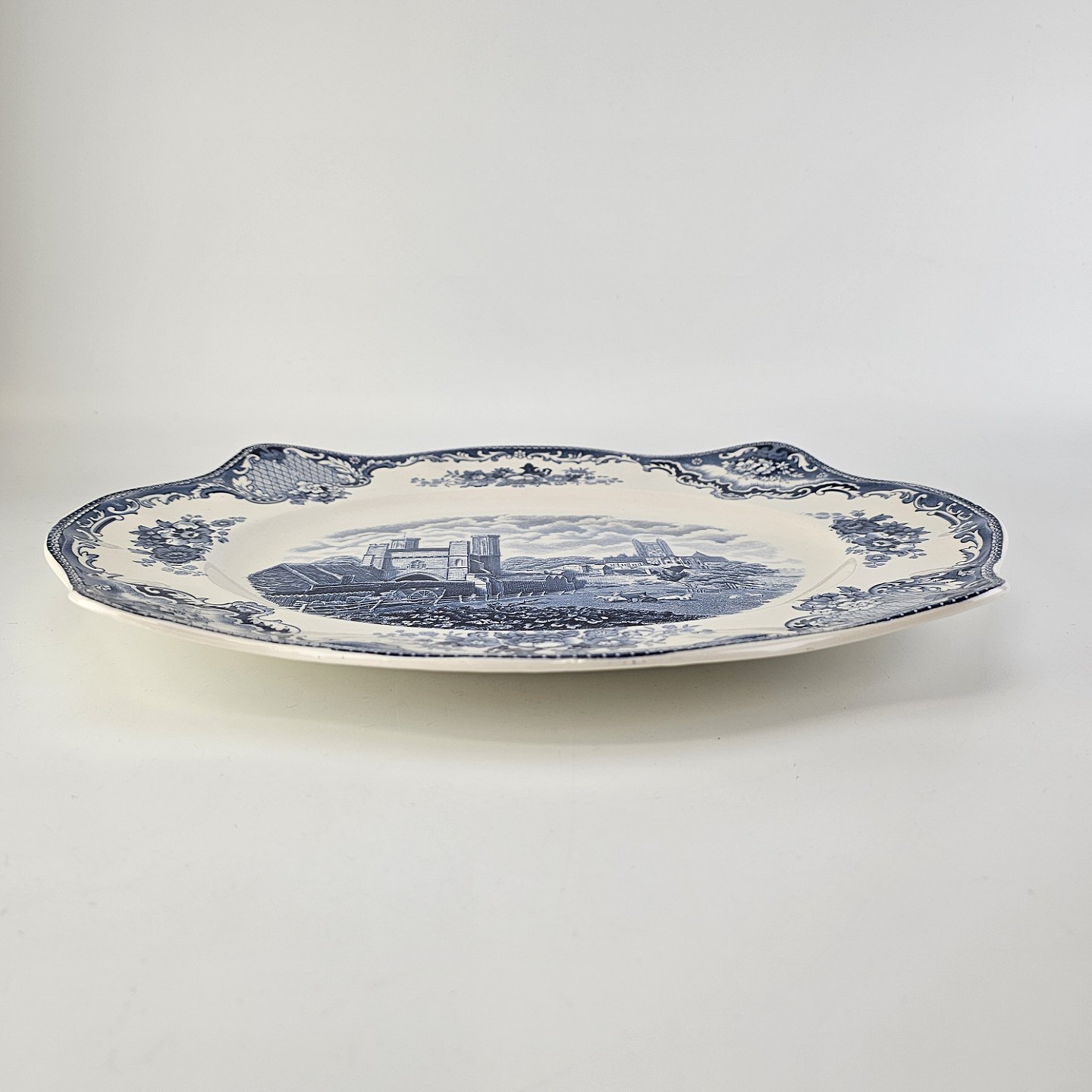 Ovalt daf af engelsk fajance fra stellet Old Britain Castles i blå