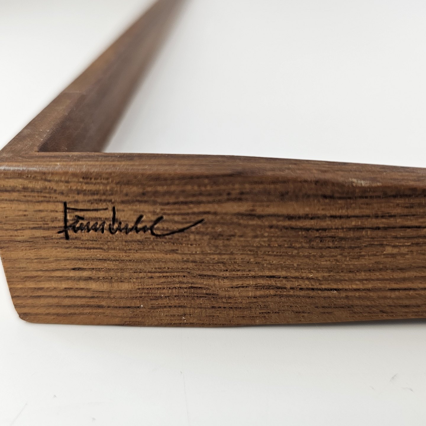 Vendbar bakke i teak tre og højglans laminat, sort på den ene side og hvid på den anden