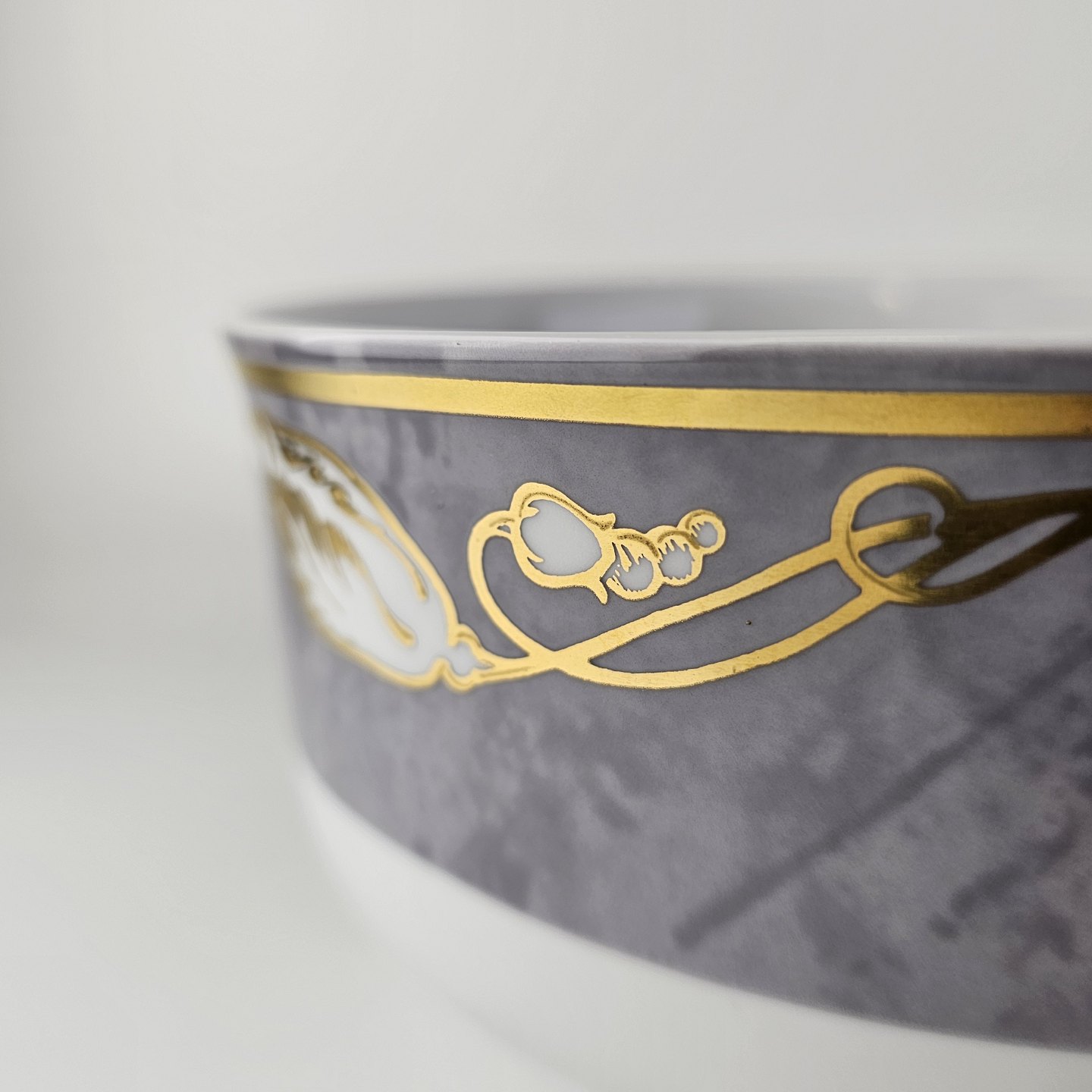 Vase med grå marmoret bort dekoreret med gylden blomsterknop