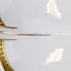 Stel i glat hvidt porcelæn dekoreret med sort streg i guldbort.