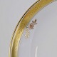 Stel i glat hvidt porcelæn dekoreret med guldkurv og brune blomster samt kantet af med guldbort med bladmotiv.