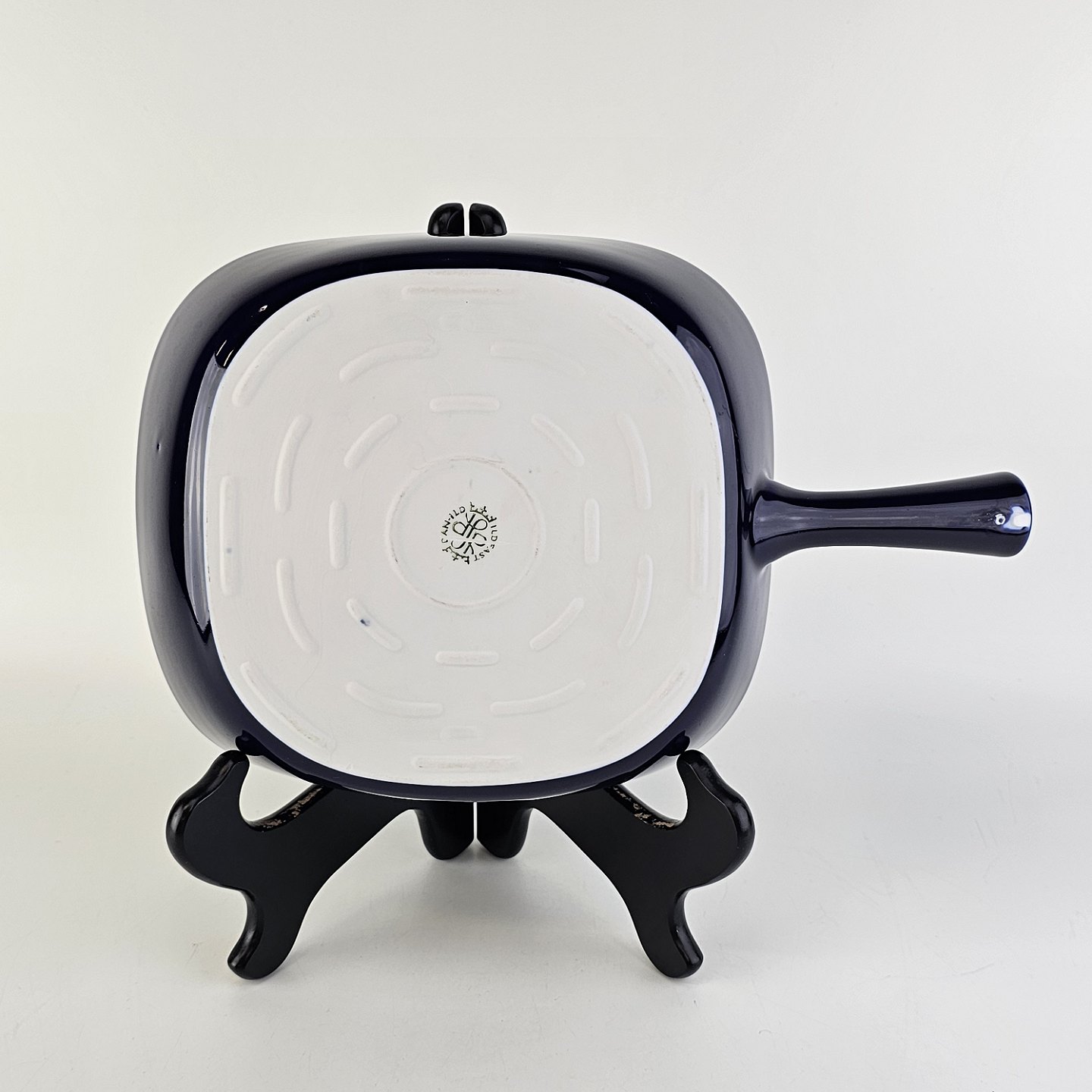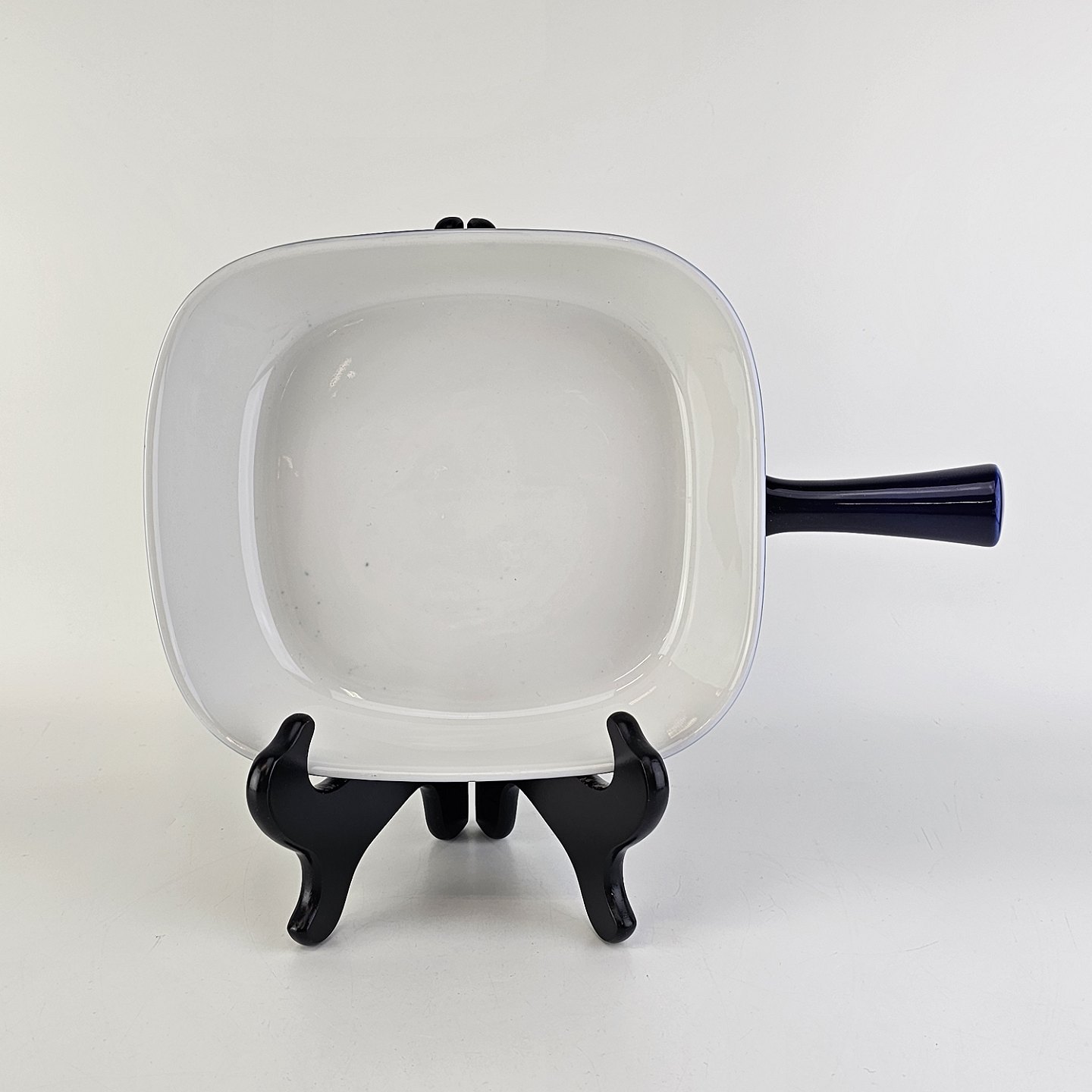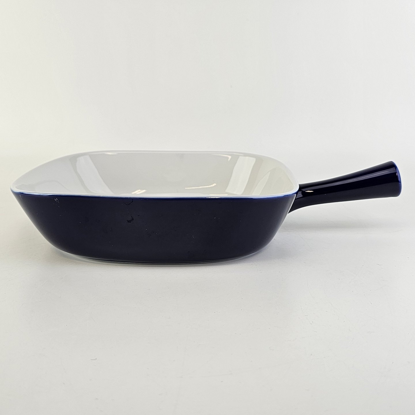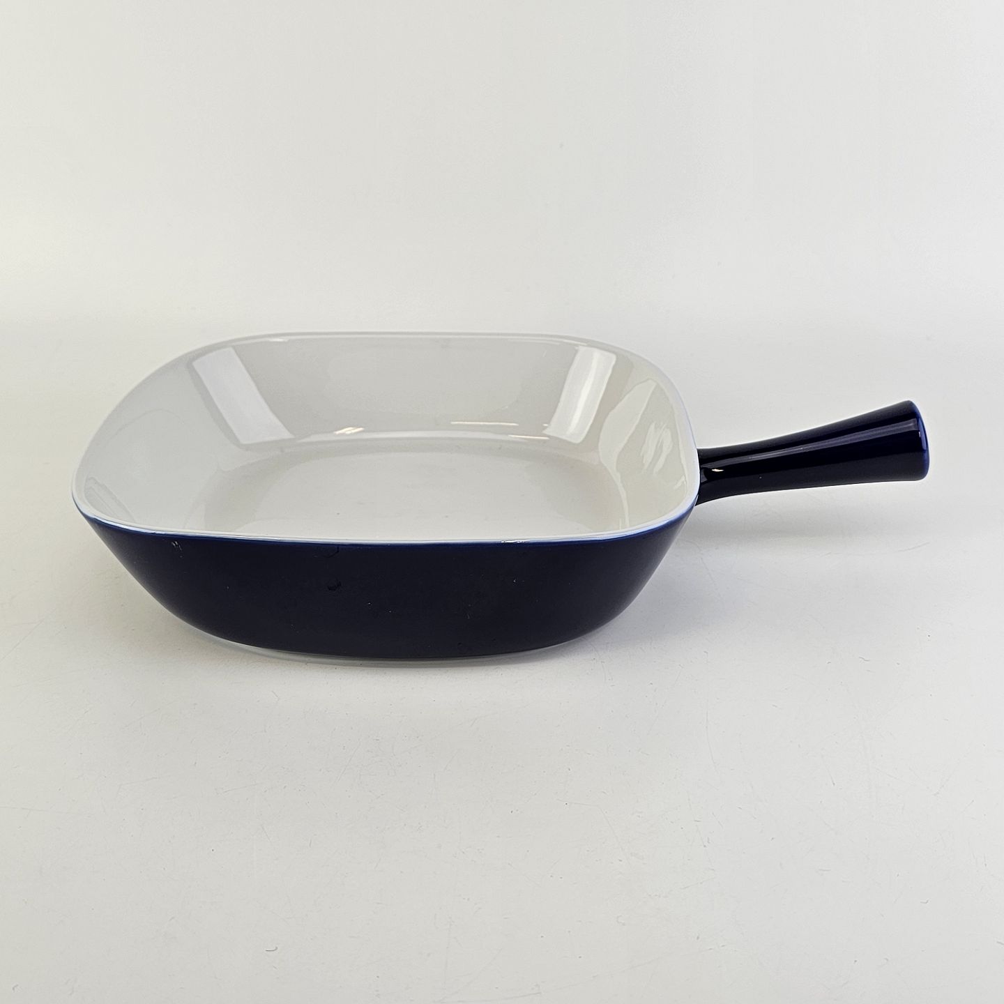 Firkantet lavt fad med håndtag i porcelæn fra stellet Blå Glasurfarvet