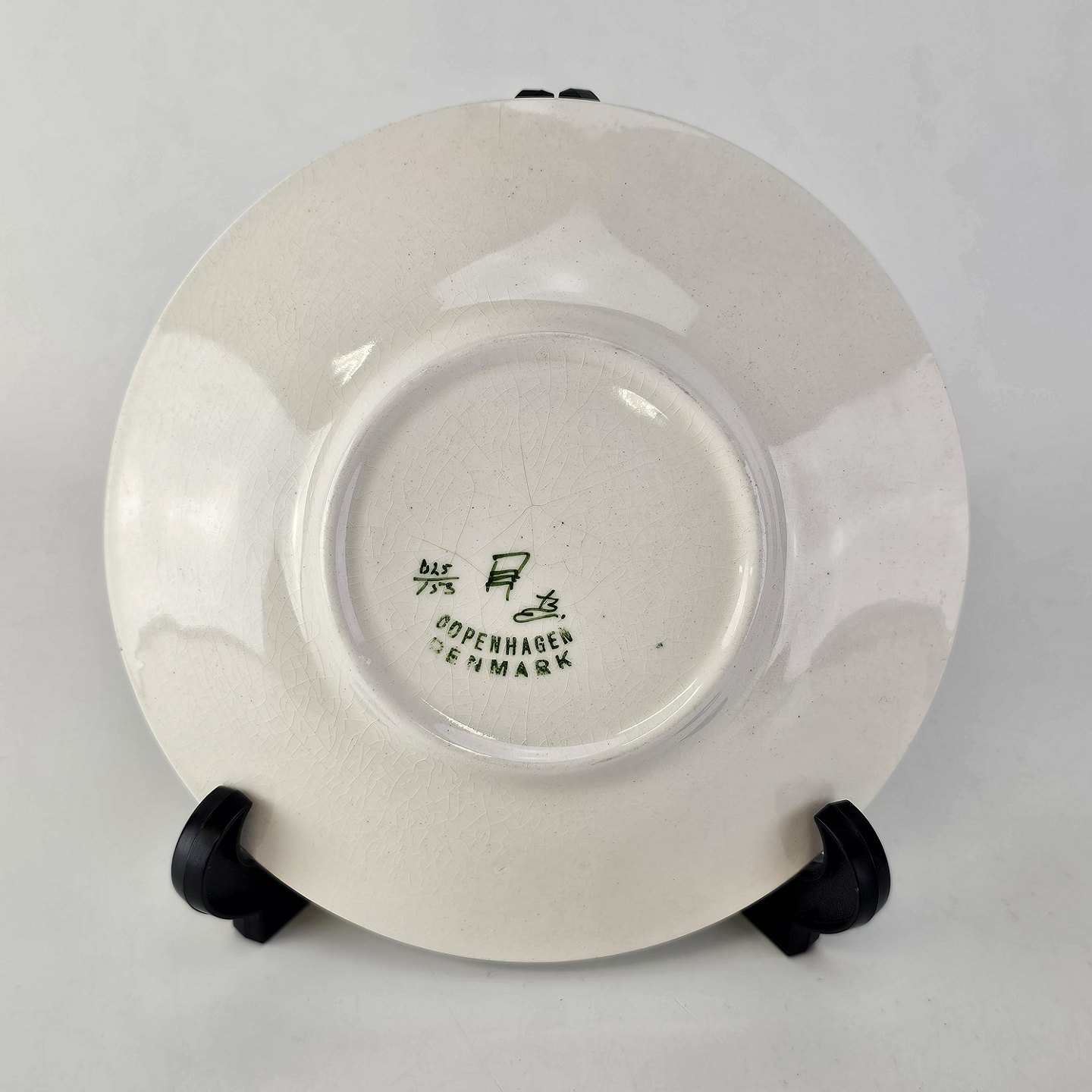 Stellet er i hvid fajance og håndmalet med dekoration af blå violer