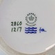 Fremstår med enkelte ridser i glasuren samt et enkelt sted med en uregelmæssighed i forbindelse med støbningen.