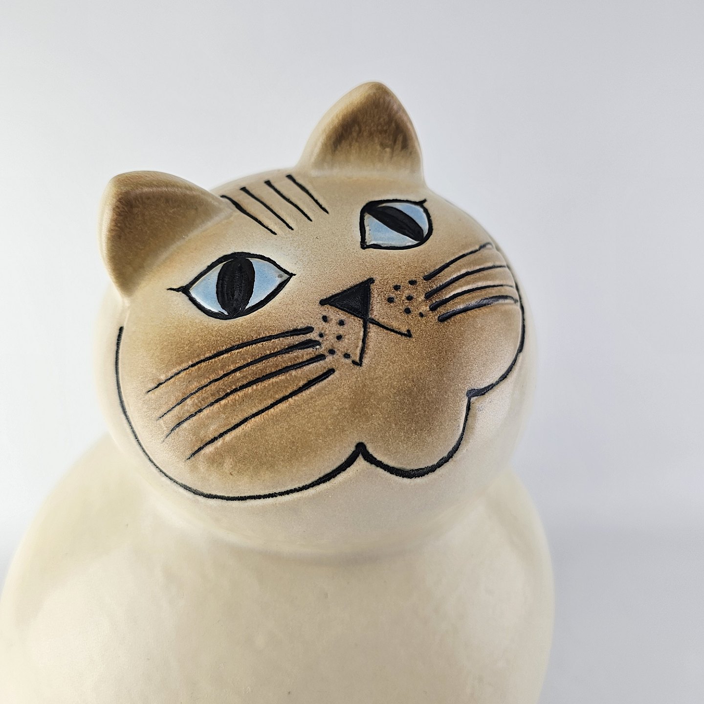 Figur i stentøj med motiv af en lys kat af modellen Mia fra år 2010