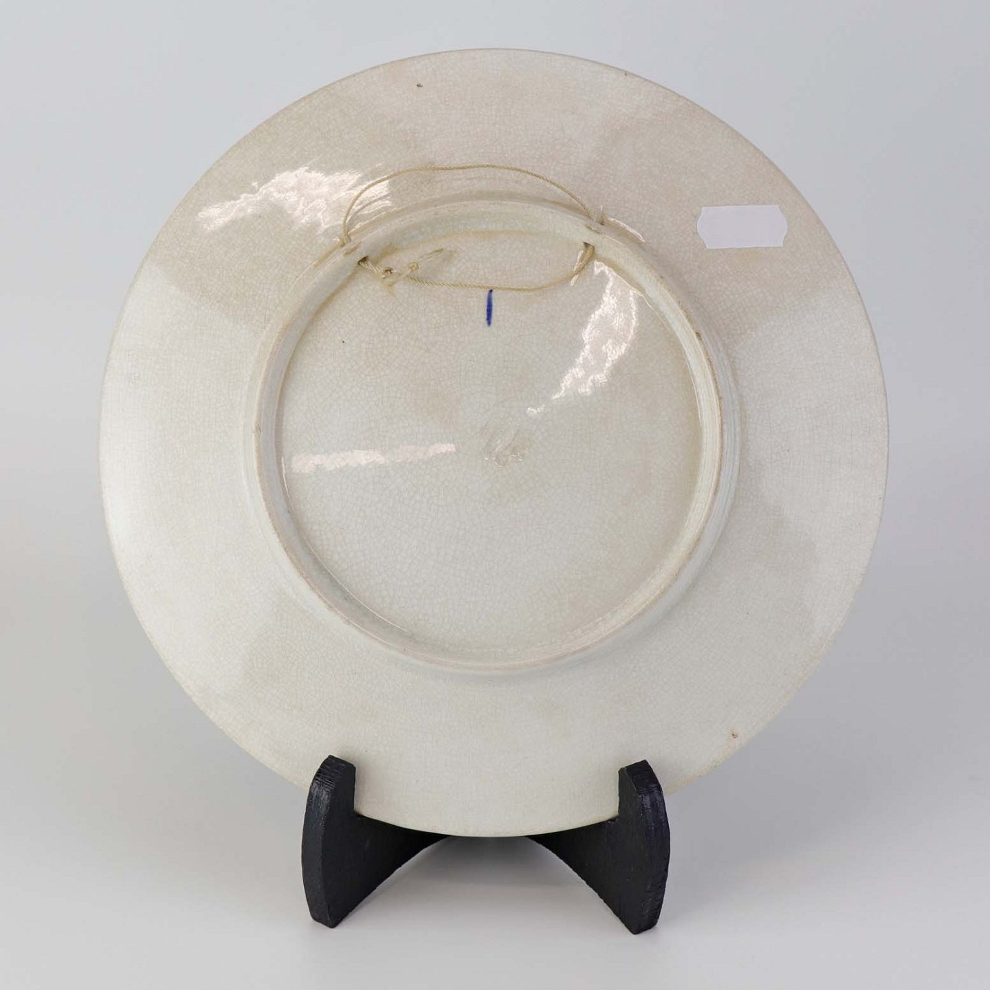 Fremstår med krakkeleringer i glasuren, letttere mørkninger langs kanten og på bagsiden.