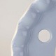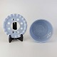 Service i lyseblå fajance dekoreret med tynd hvid kant.