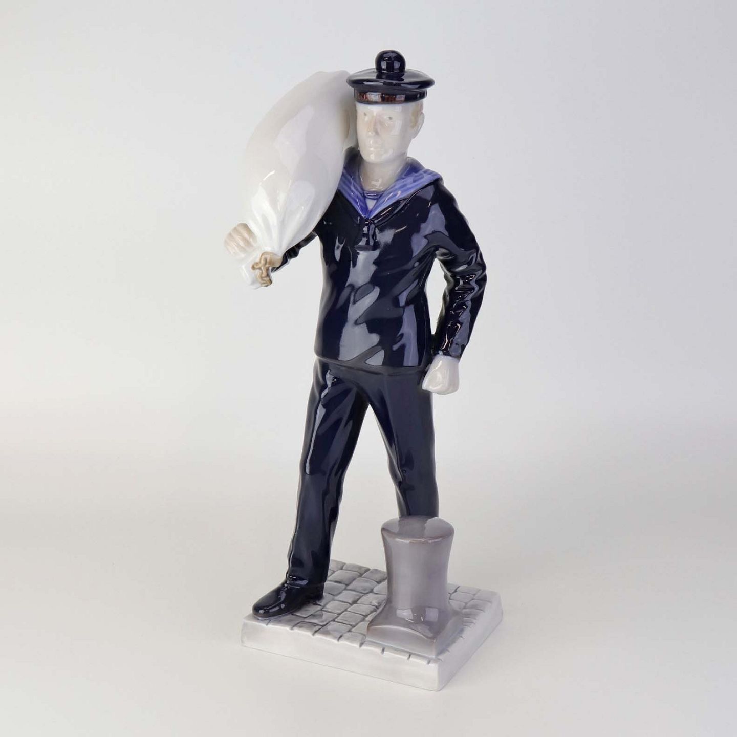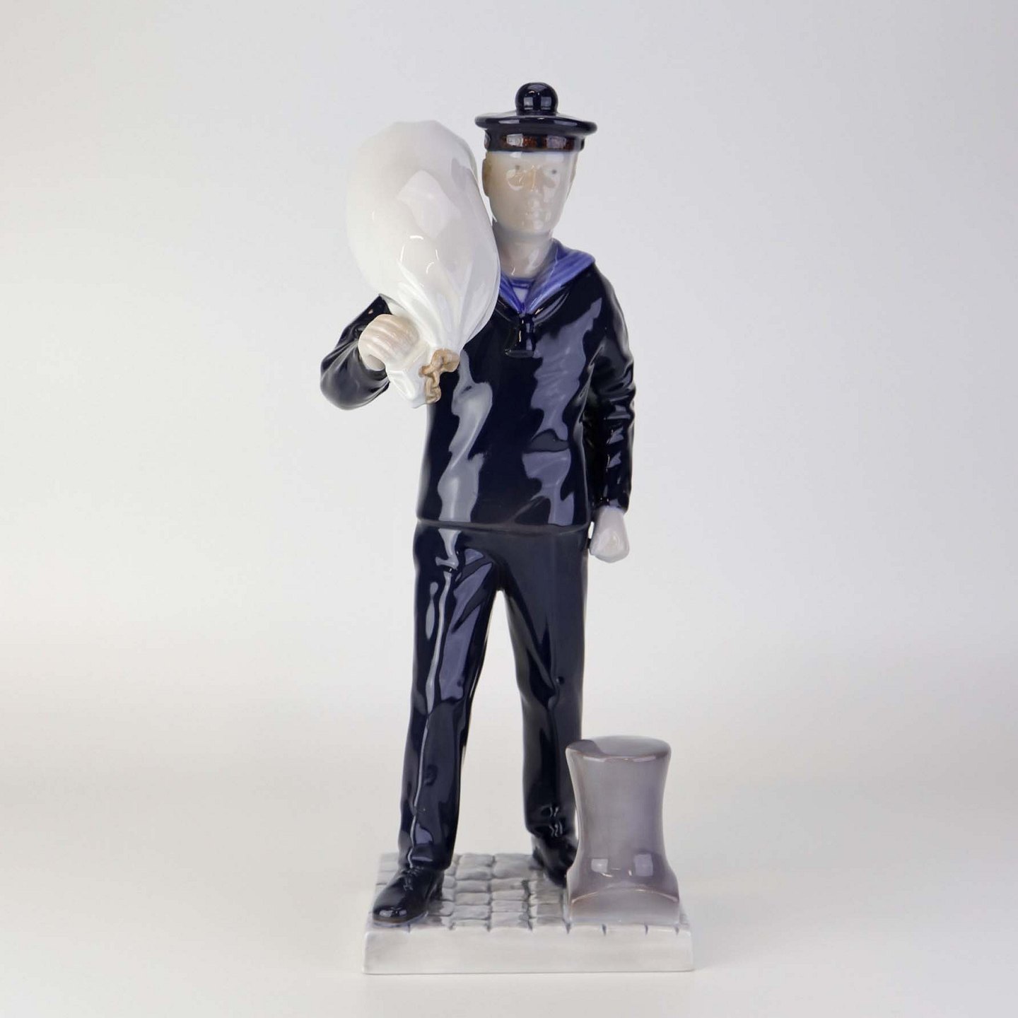Figur i porcelæn med motiv af Matros med vadsæk fra skibet George Stage. Nr. 2456