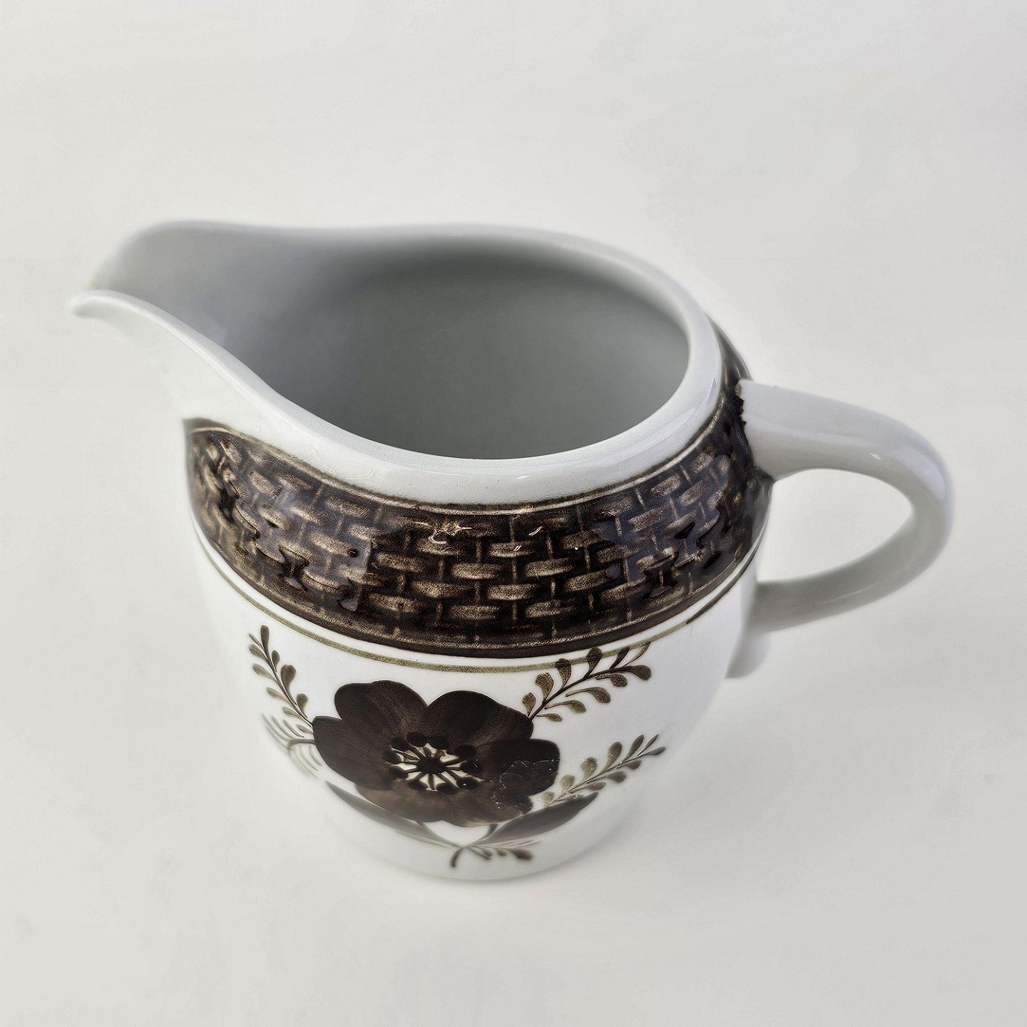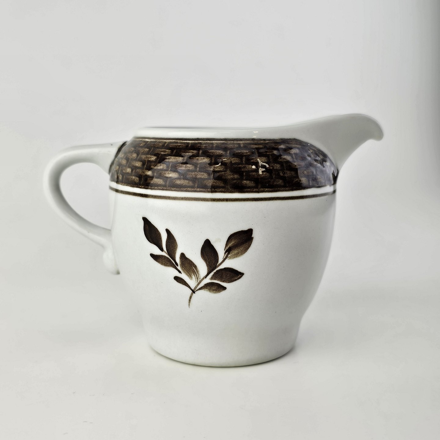Flødekande i fajance fra stellet Brun Tranquebar fra år 1919