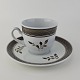 Moccakop med underkop i fajance fra stellet Brun Tranquebar fra år 1919