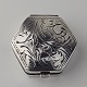 Sekskantet pilleæske i sterling sølv med indgraveret bladmotiv