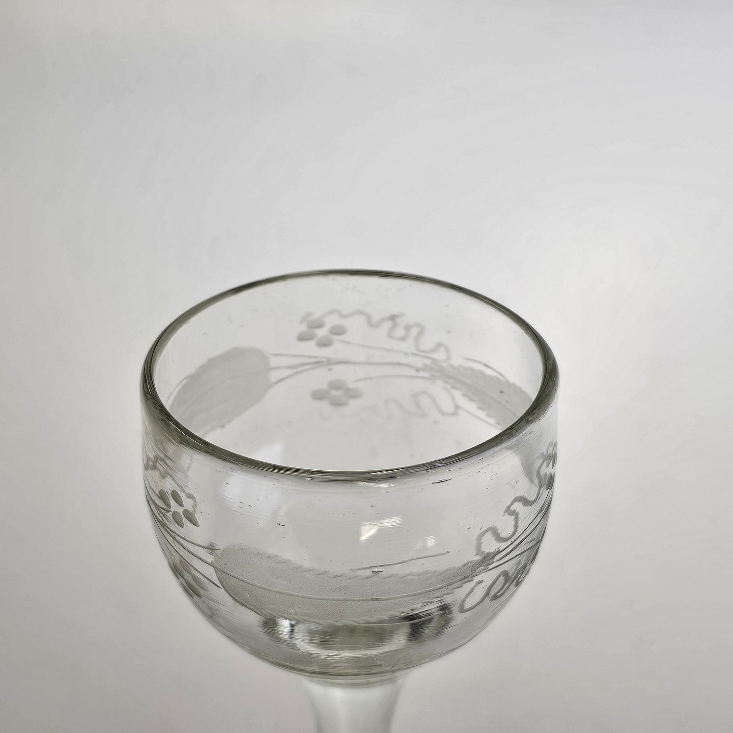 Håndblæst vinglas med spidsbladet løvslibning