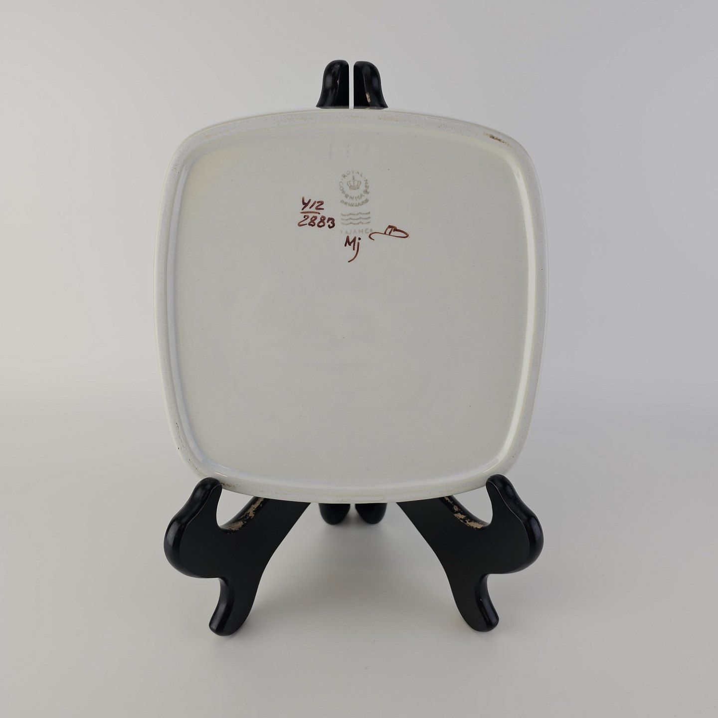 Firkantet fad fra serien Tenera i fajance med abstrakt dekoration i blå nuancer